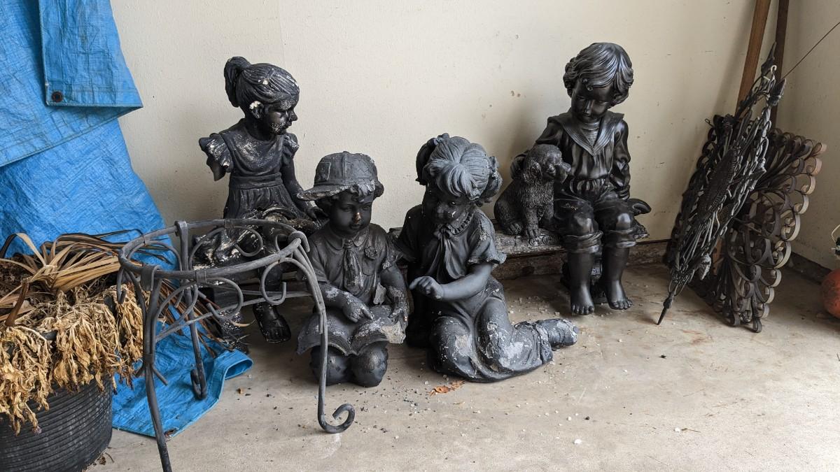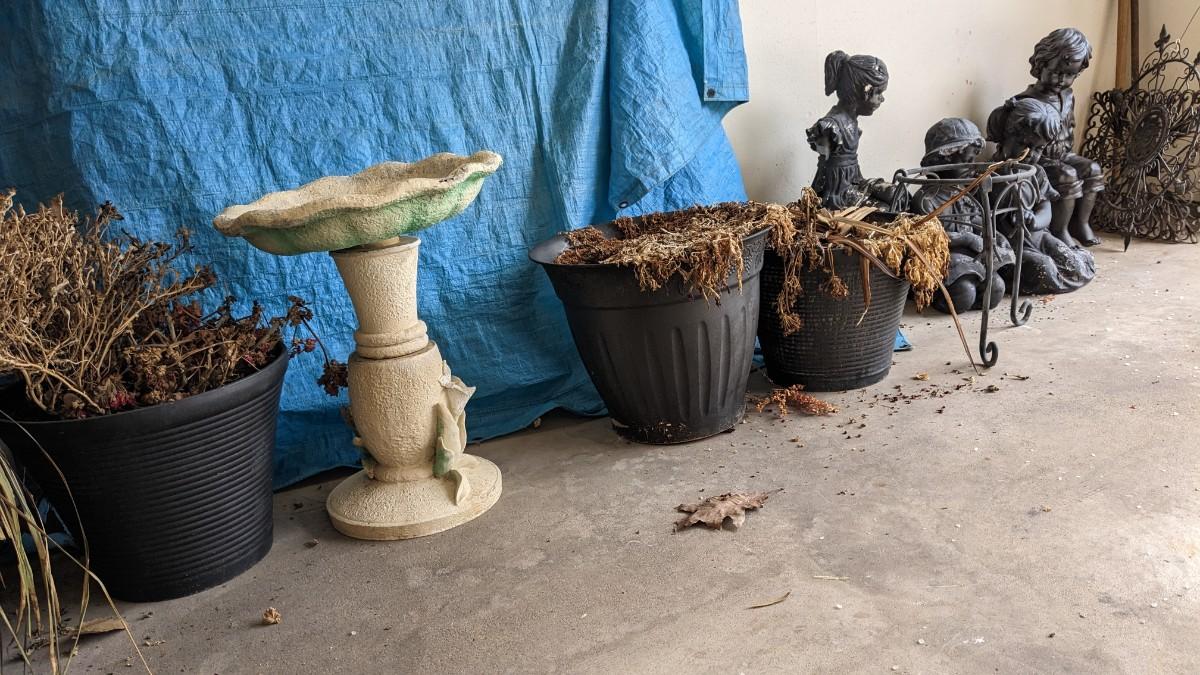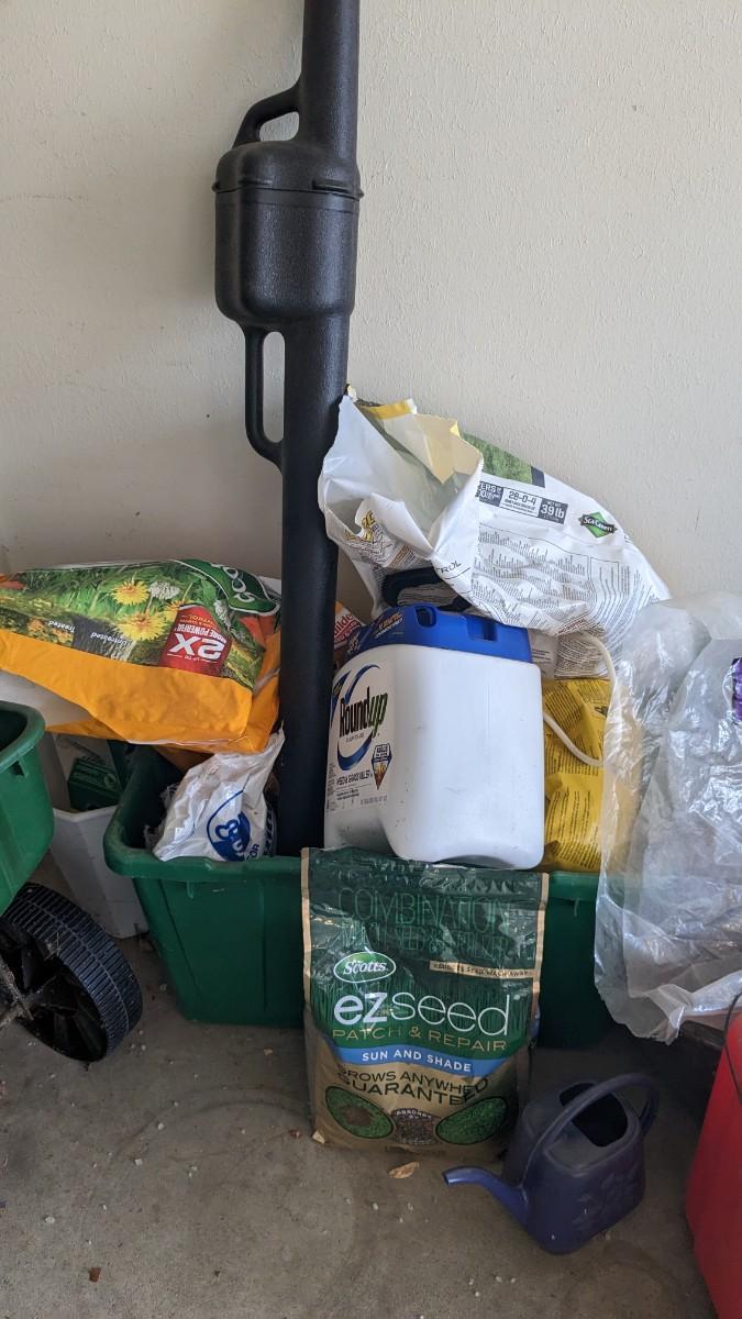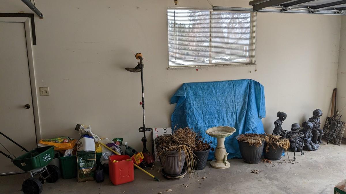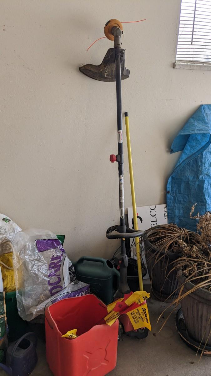 Tons of gardening items. Includes nice Craftsman weed eater w/ compression, no fluid so not fully tested. Pots, garden decor, feed and seed for plants, scotts seeder, and much more! No shipping. Winning bidder responsible for removal of ALL items.