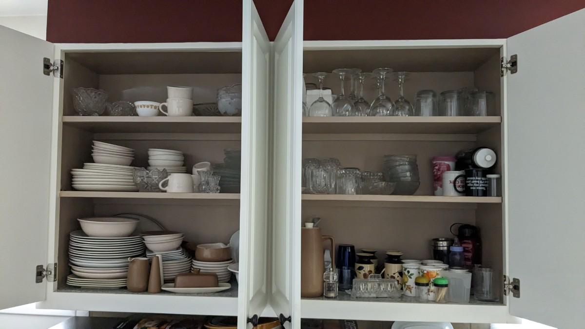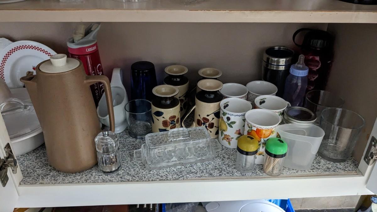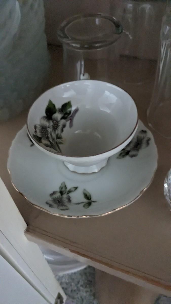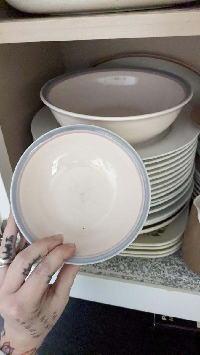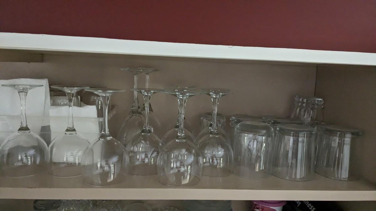 A STACKED assortment of beautiful vintage and contemporary dishes, glasses, cups, mugs, and more! includes Pfaltzgraff, a stunning unmarked stoneware set, cut glass, salad sets, wine glasses, and so much more!! All in great shape! No shipping. Winning bidder responsible for removal of all items.