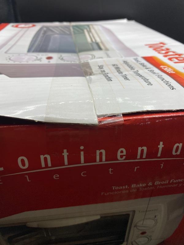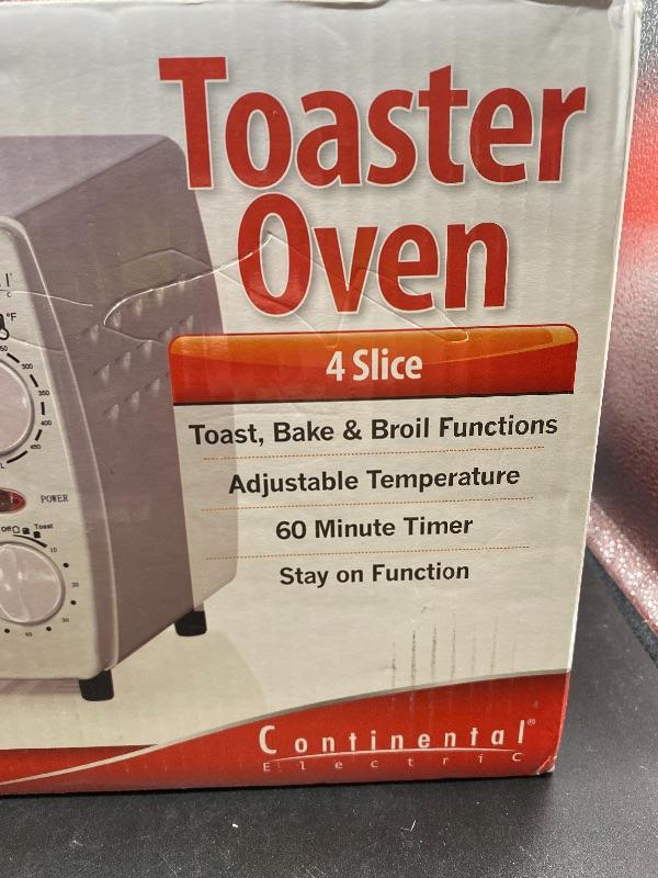 Continental Electric 4 slice toaster oven. New, unopened box. Toast, bake, and broil functions. Pick up in Brea