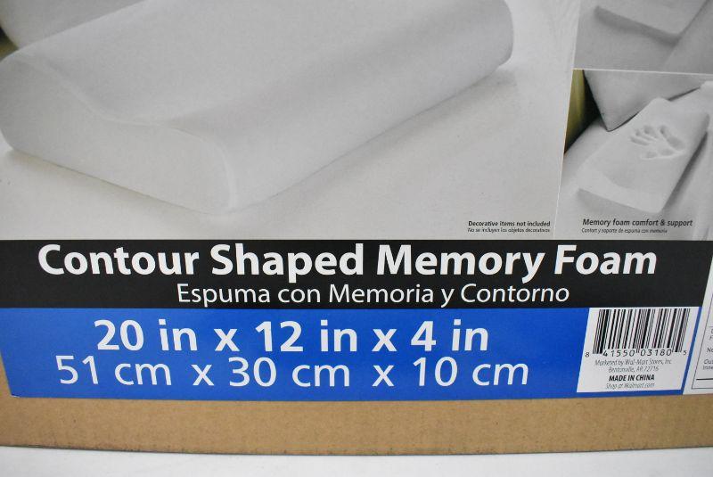 Contour Shaped Memory Foam Pillow, 20" x 12" x 4" - New, Open Box