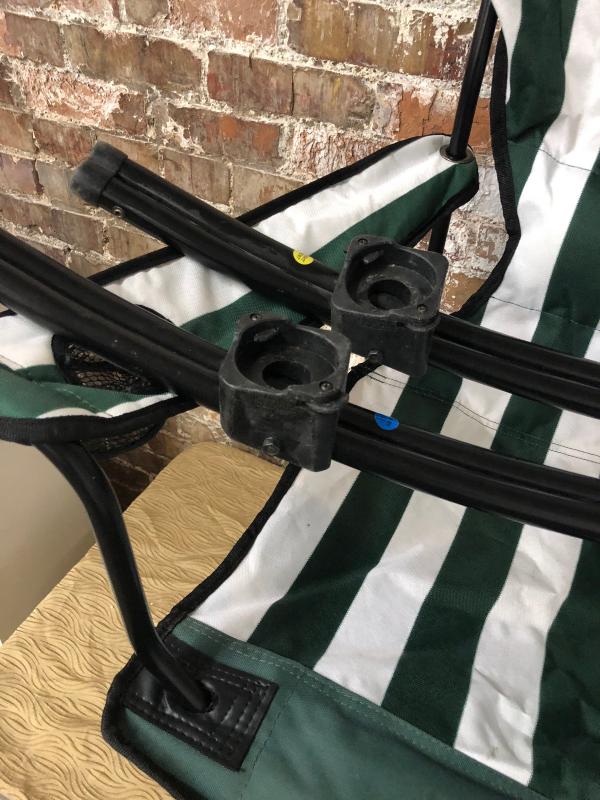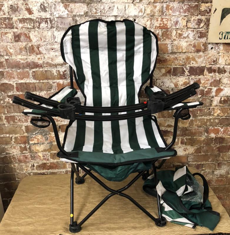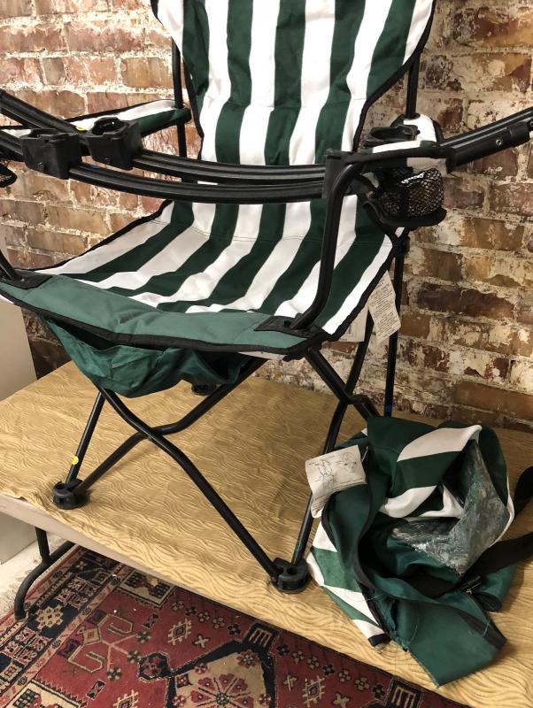 Excellent condition on this striped folding camp chair that converts to a rocker...as shown...