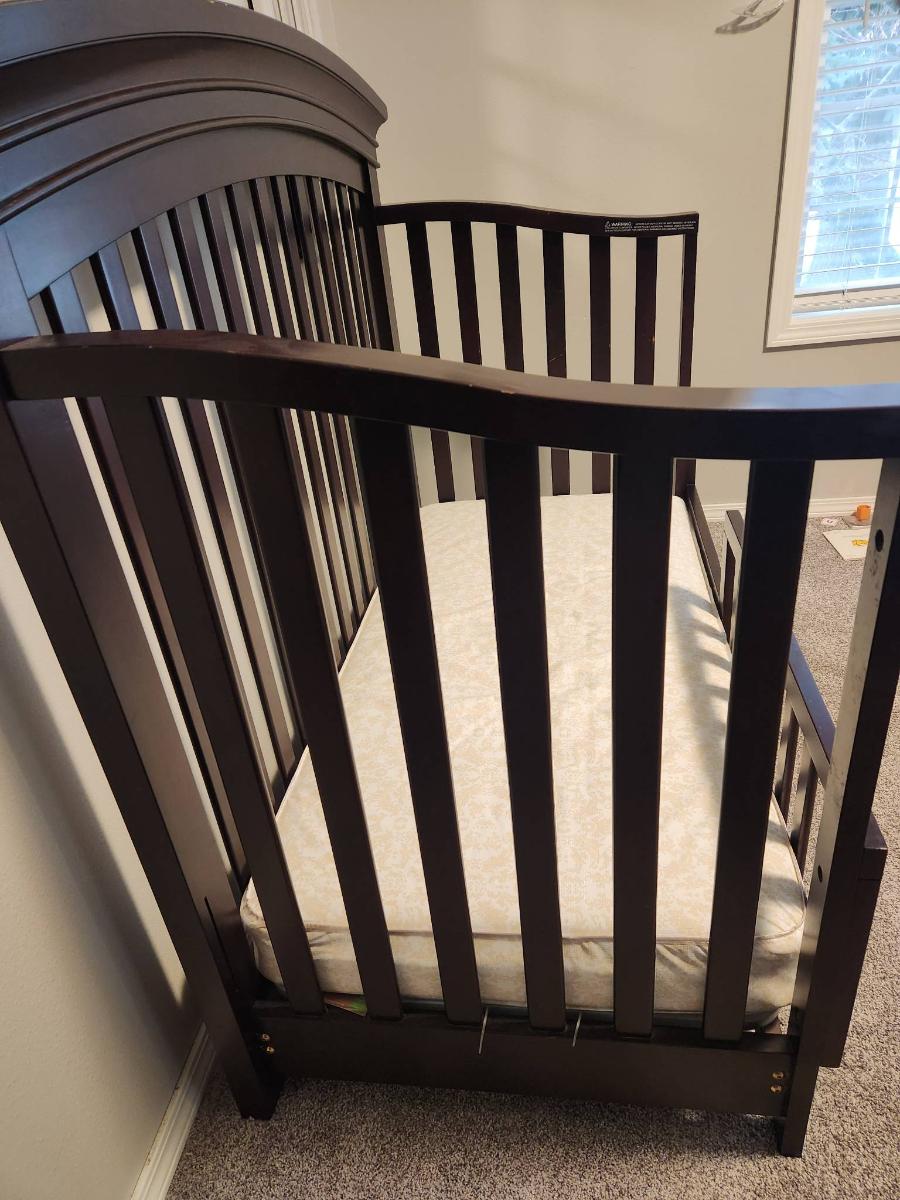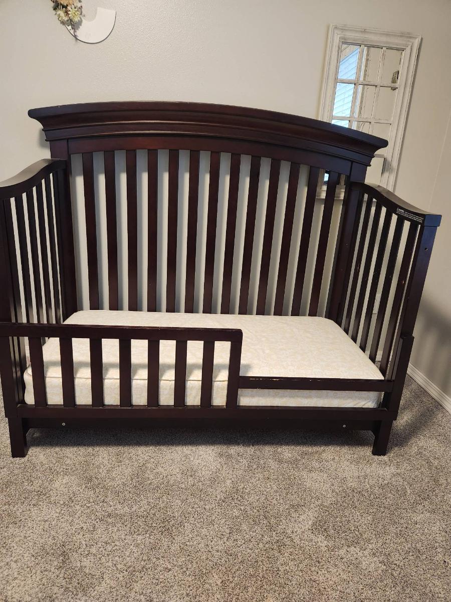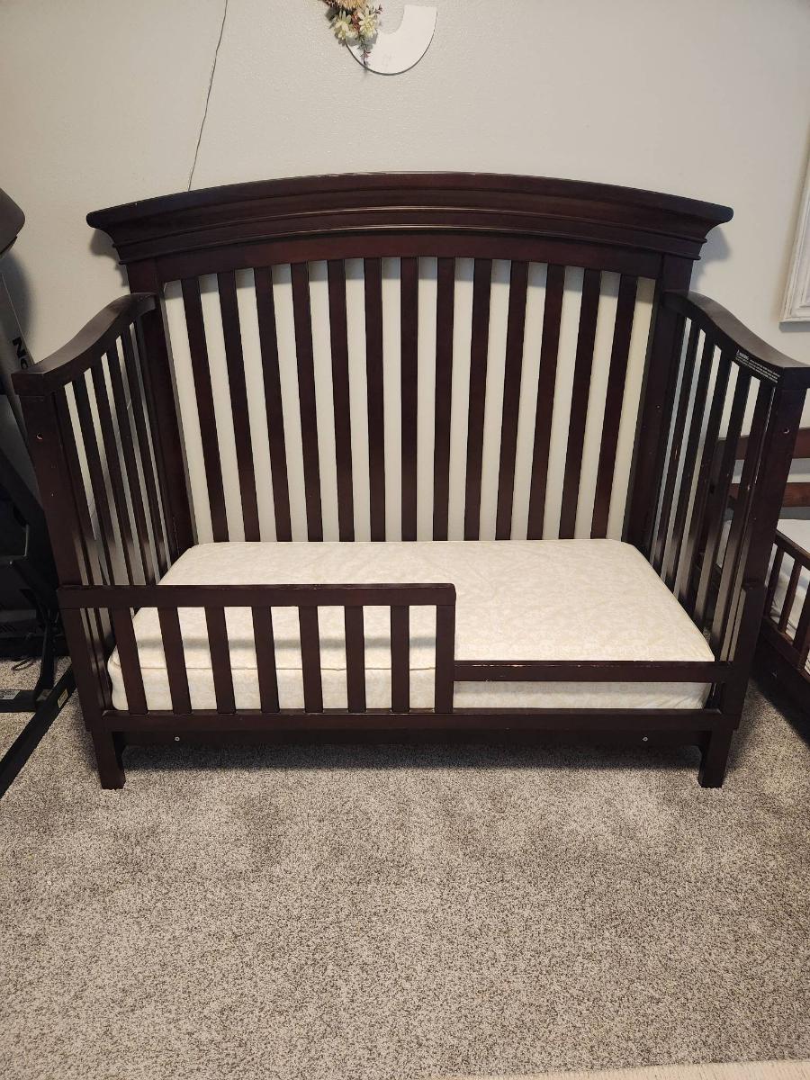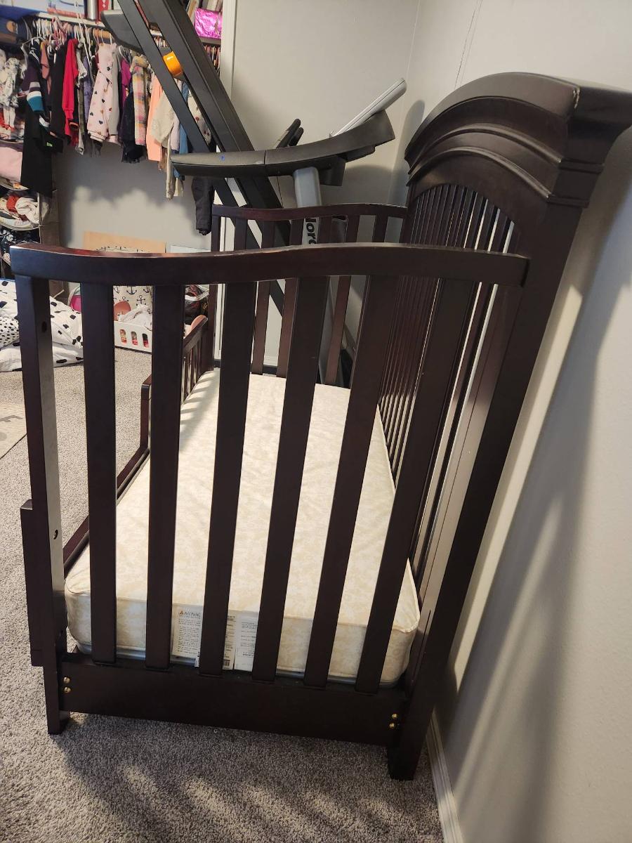 Convertible Dark Wood Crib with Mattress
