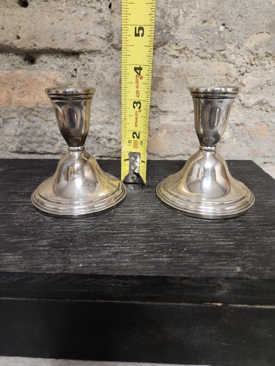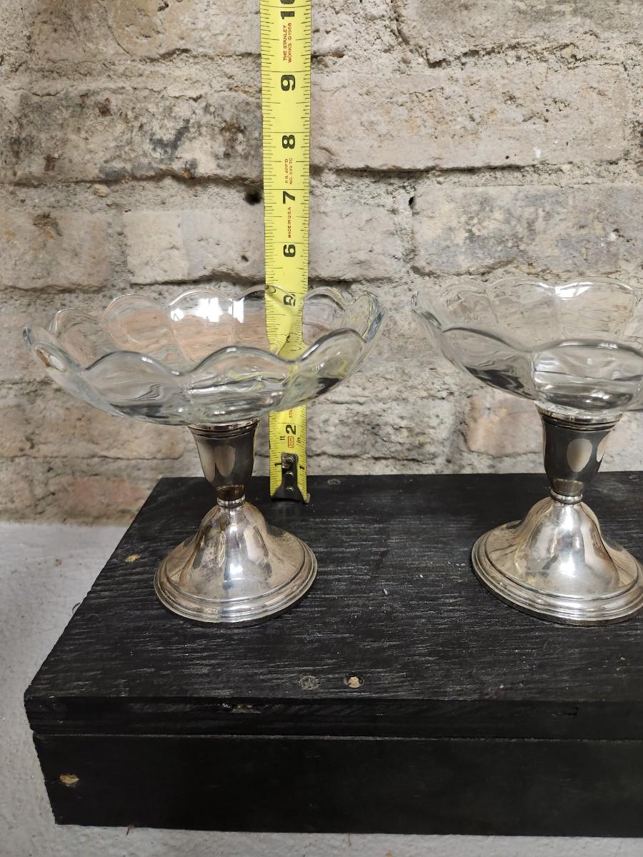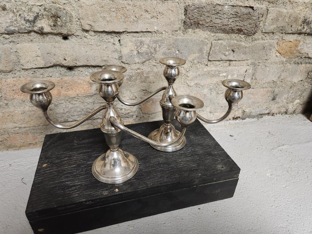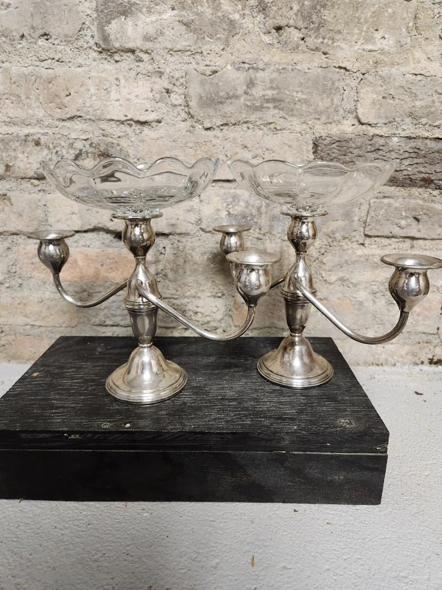 Fantastic pair of Premier Sterling Convertible candlesticks. Two glass bowls, two middle sections and two bases.