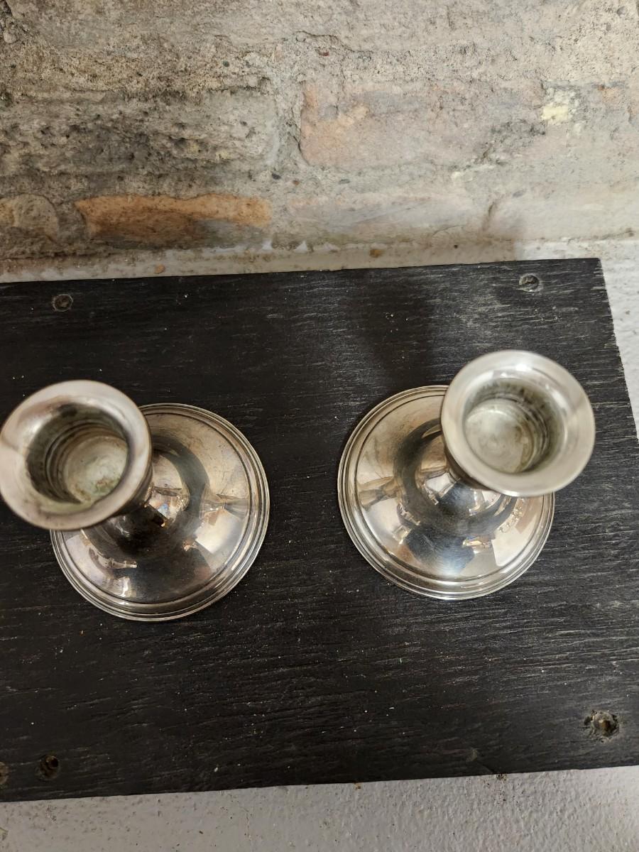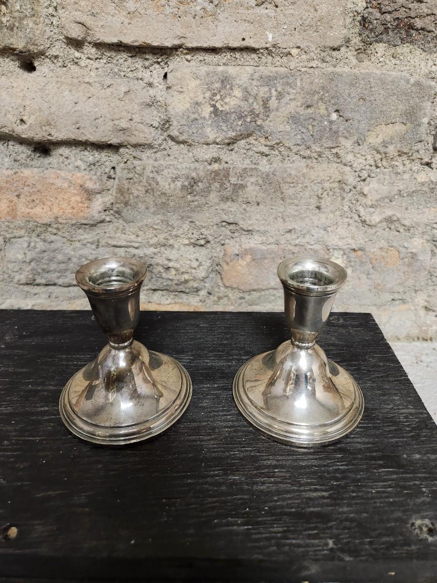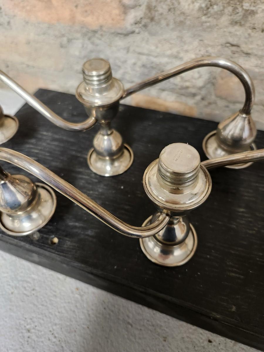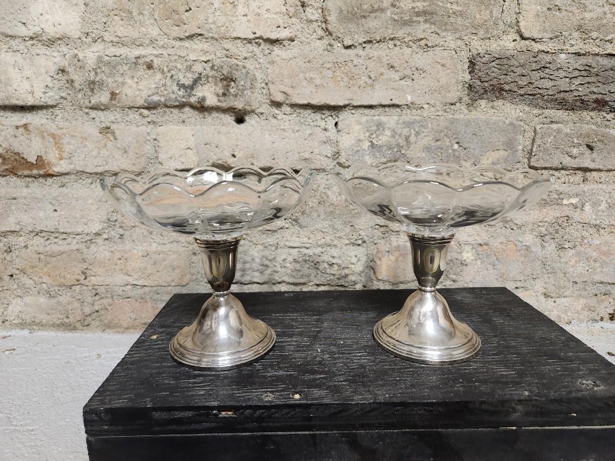 Fantastic pair of Premier Sterling Convertible candlesticks. Two glass bowls, two middle sections and two bases.