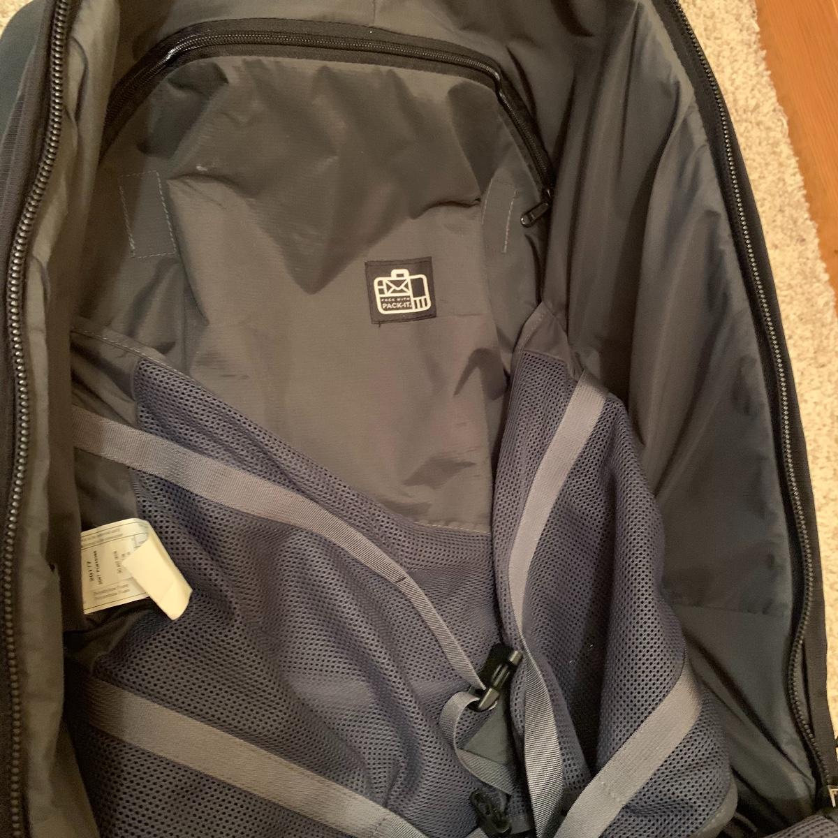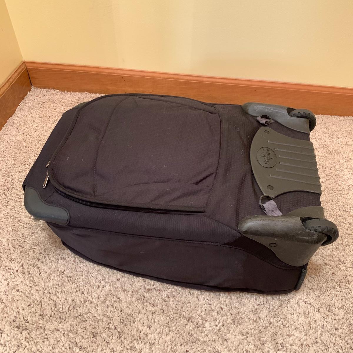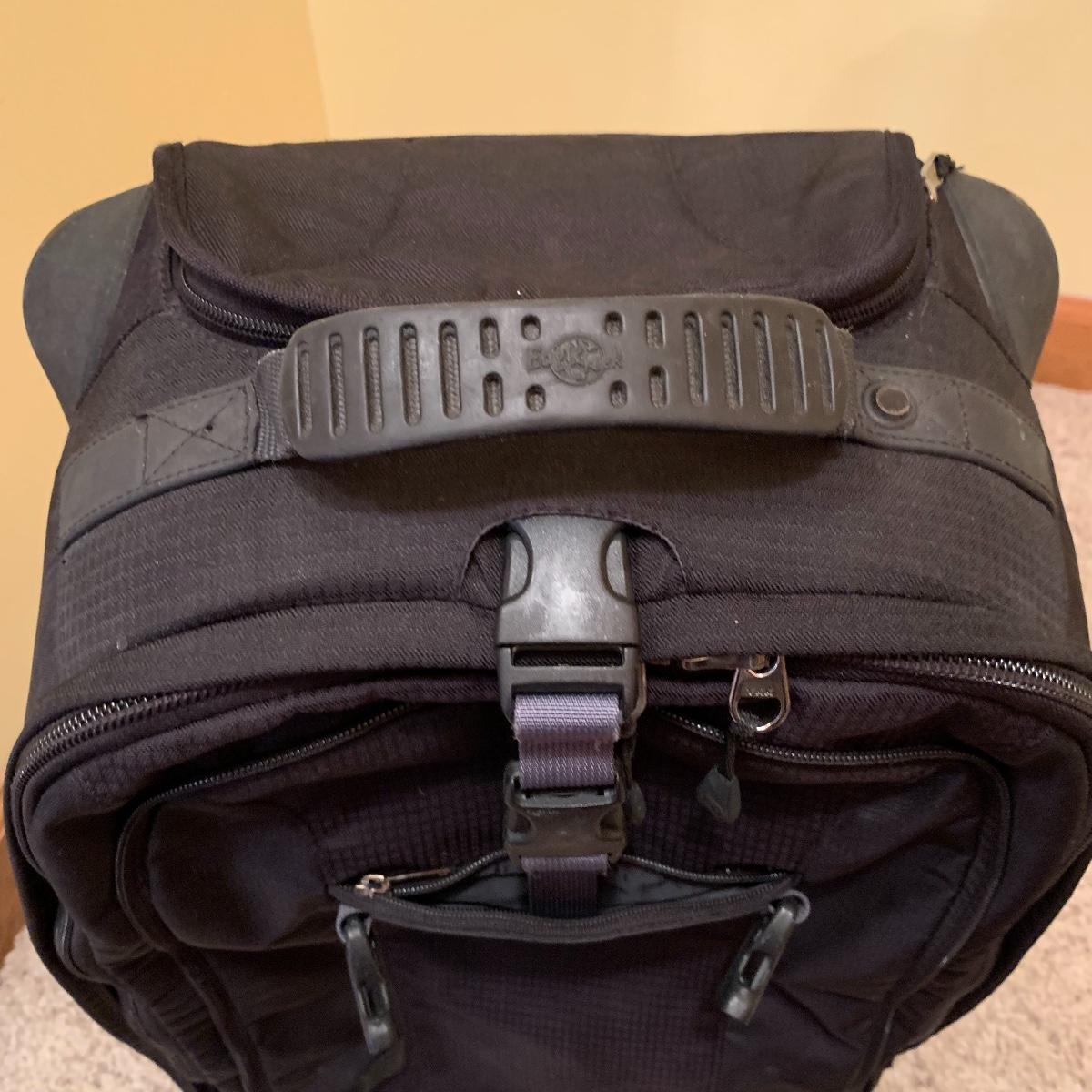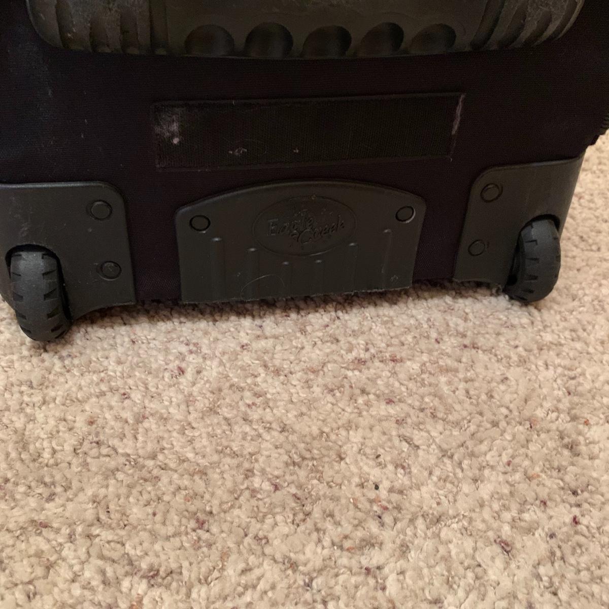 This Eagle Creek carry-on sized suitcase can convert from a wheeled rolling bag with a retractable handle into a backpack complete with two shoulder straps and a hip belt. It is used and some scuffs are seen on the bottom and on the wheels. Functionally it is in good condition. Also included is a 13L Outdoor Products Arroyo backpack with a Last Drop system plastic water bladder. It is used, but in good condition. Some water is still in the tube, but it is washable. There is also a single strap sling crossbody C Port and Company bag. It has two pockets and a slot for headphones. Local pickup only.