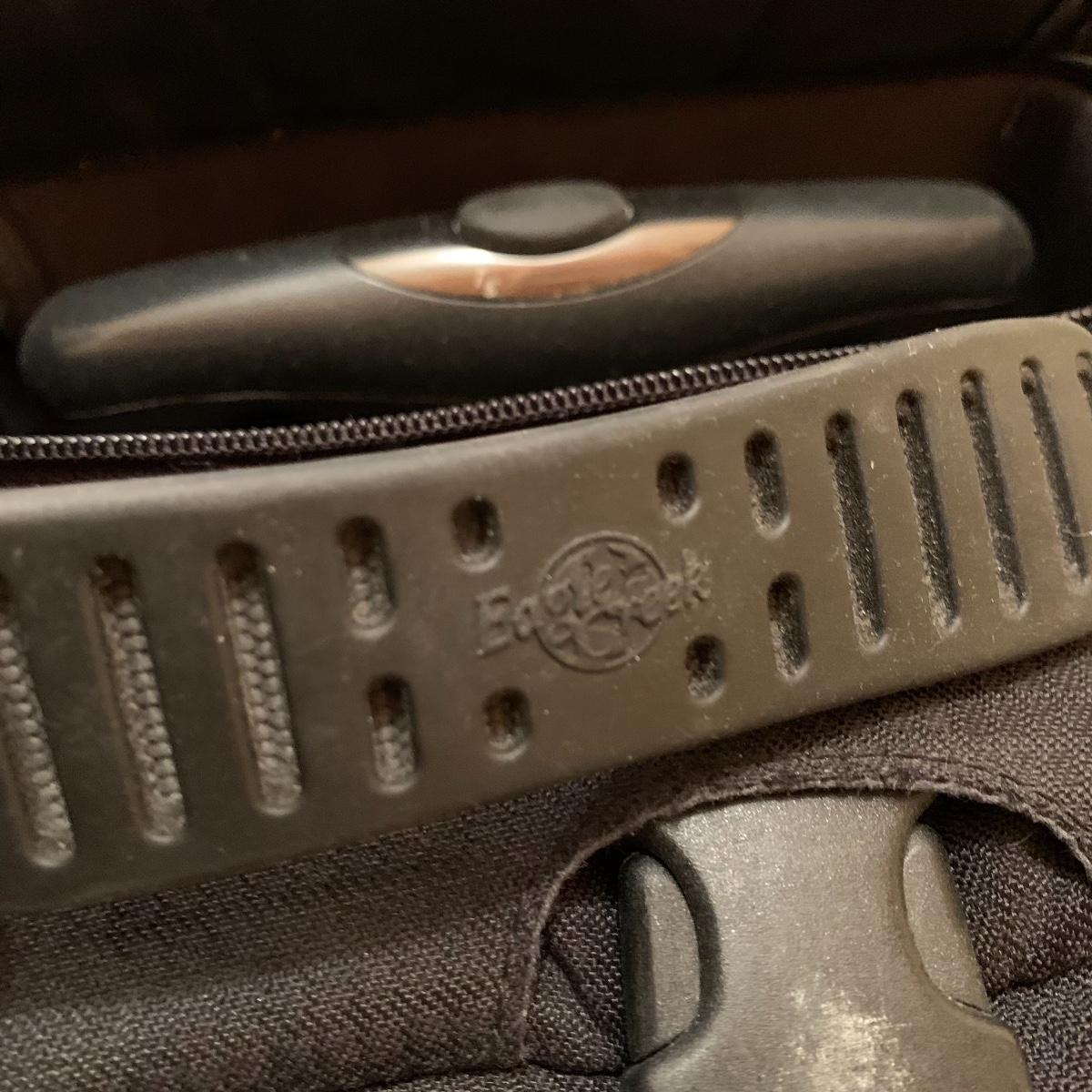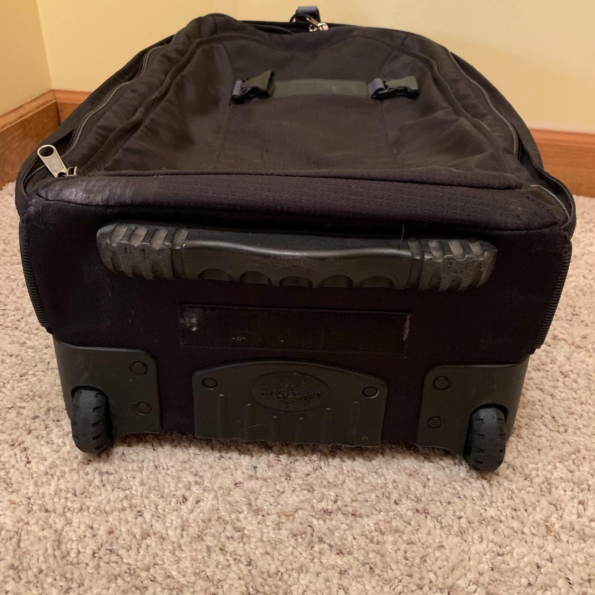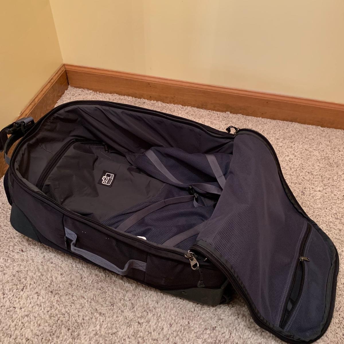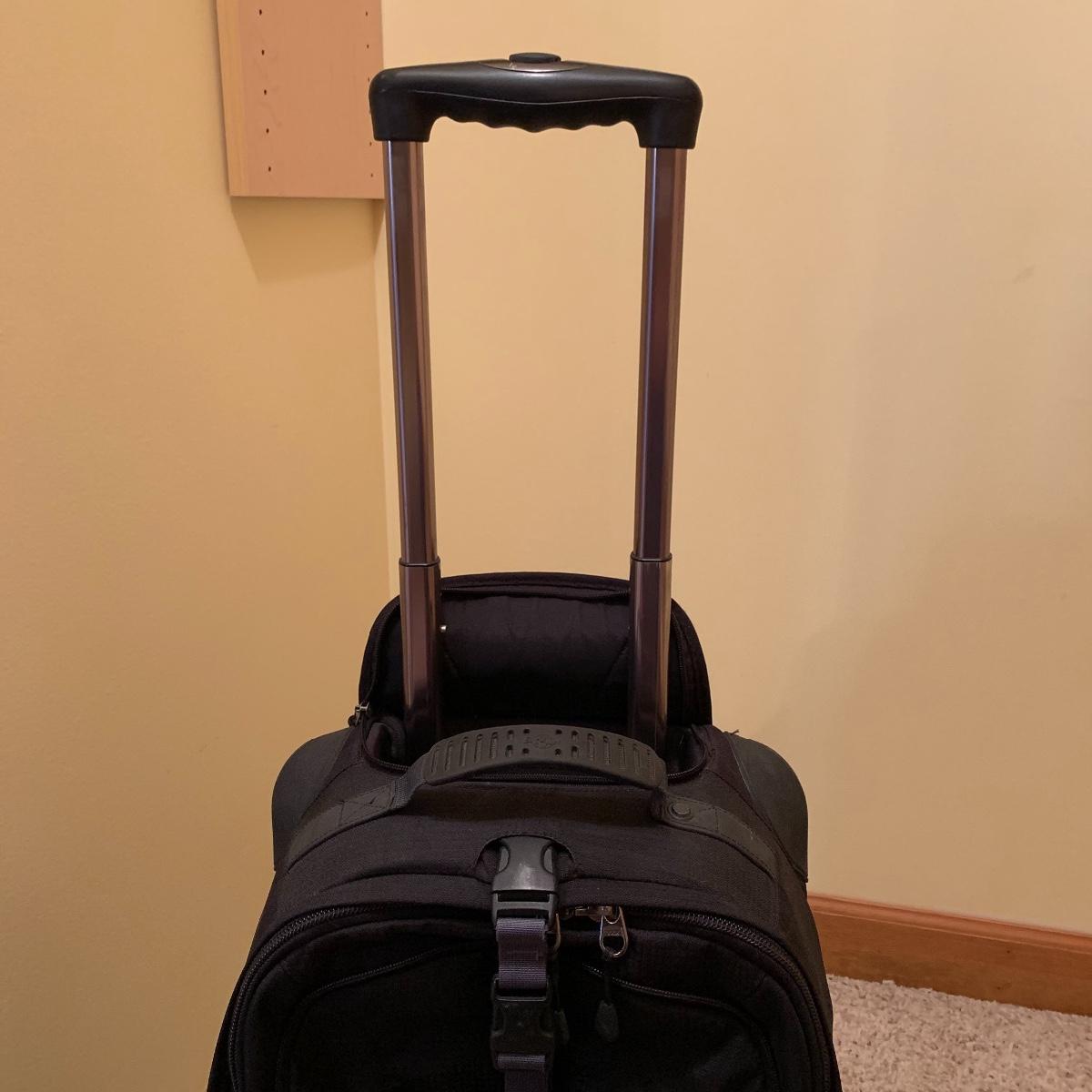 This Eagle Creek carry-on sized suitcase can convert from a wheeled rolling bag with a retractable handle into a backpack complete with two shoulder straps and a hip belt. It is used and some scuffs are seen on the bottom and on the wheels. Functionally it is in good condition. Also included is a 13L Outdoor Products Arroyo backpack with a Last Drop system plastic water bladder. It is used, but in good condition. Some water is still in the tube, but it is washable. There is also a single strap sling crossbody C Port and Company bag. It has two pockets and a slot for headphones. Local pickup only.