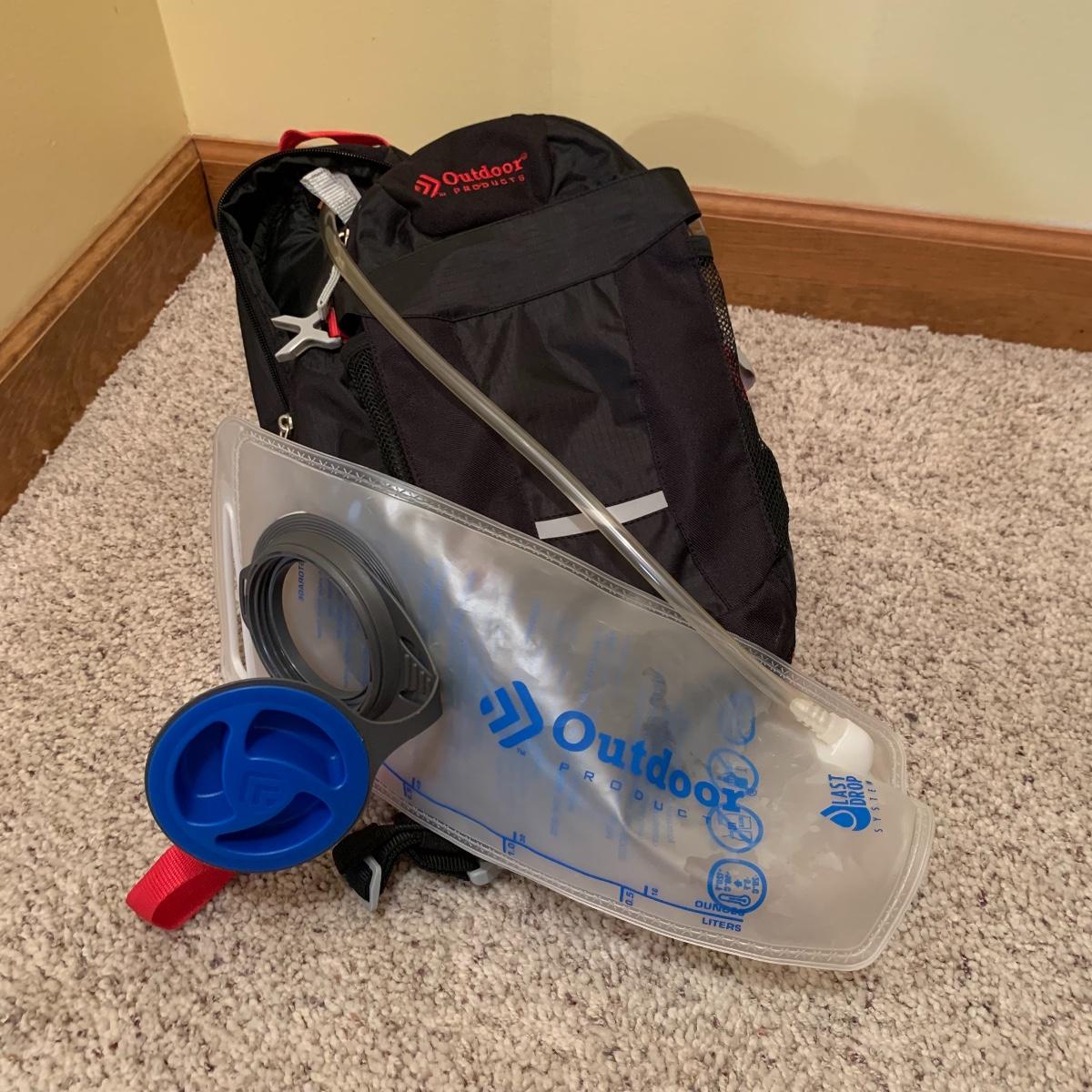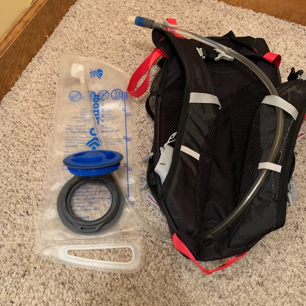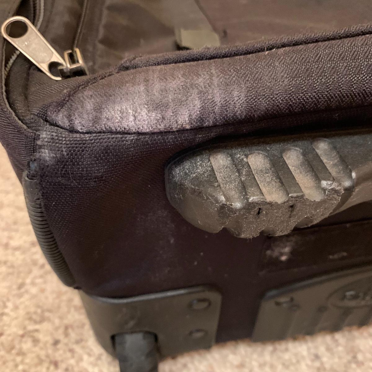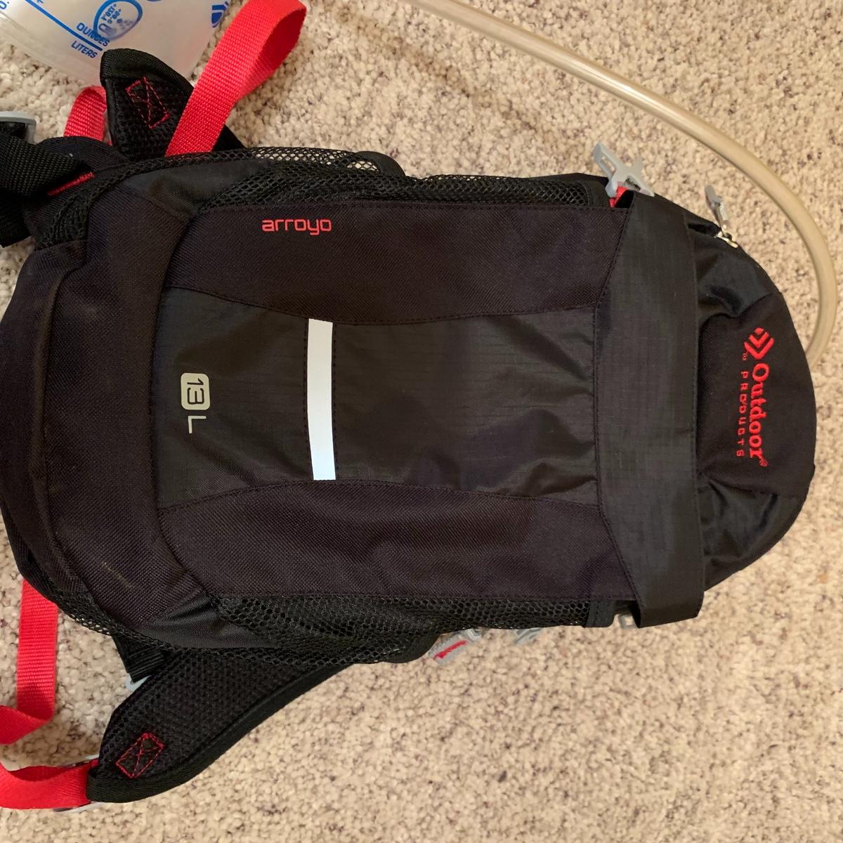 This Eagle Creek carry-on sized suitcase can convert from a wheeled rolling bag with a retractable handle into a backpack complete with two shoulder straps and a hip belt. It is used and some scuffs are seen on the bottom and on the wheels. Functionally it is in good condition. Also included is a 13L Outdoor Products Arroyo backpack with a Last Drop system plastic water bladder. It is used, but in good condition. Some water is still in the tube, but it is washable. There is also a single strap sling crossbody C Port and Company bag. It has two pockets and a slot for headphones. Local pickup only.