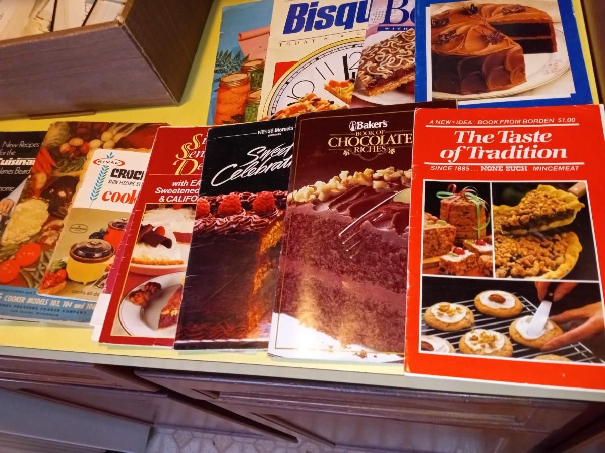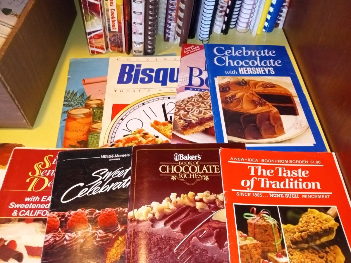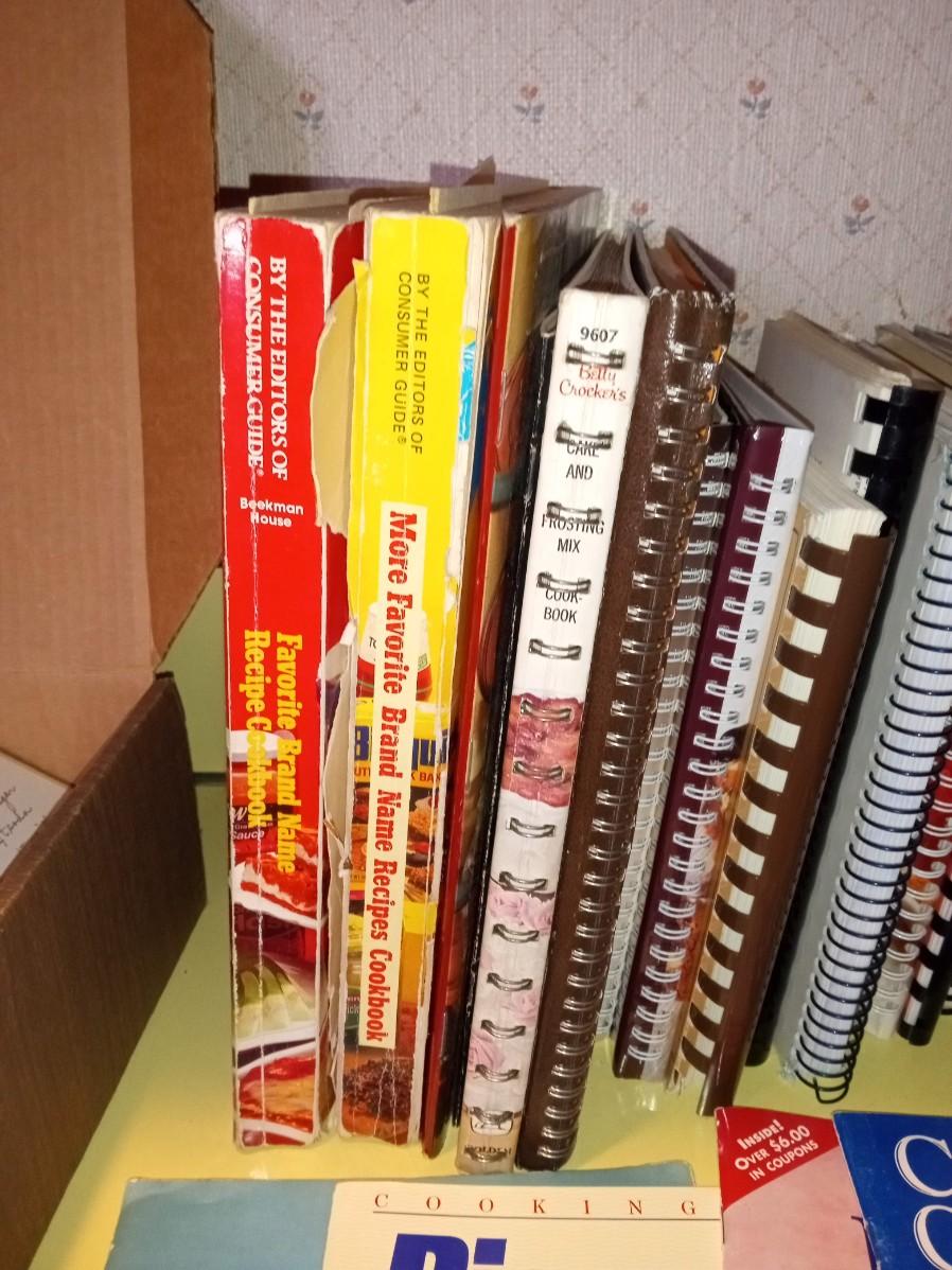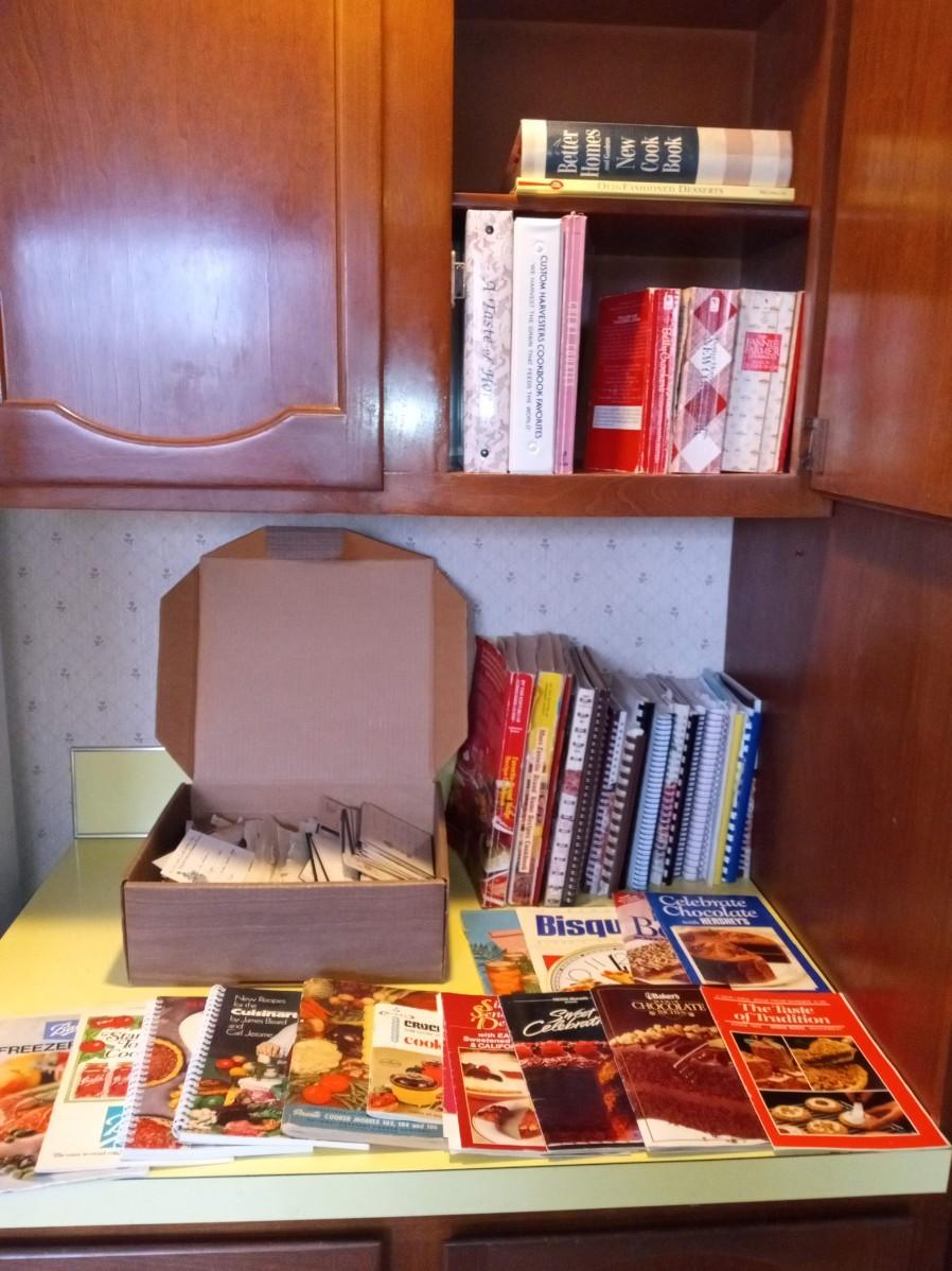 COOK BOOKS, BOX FULL OF RECIPES AND RECIPE PAMPHLETS