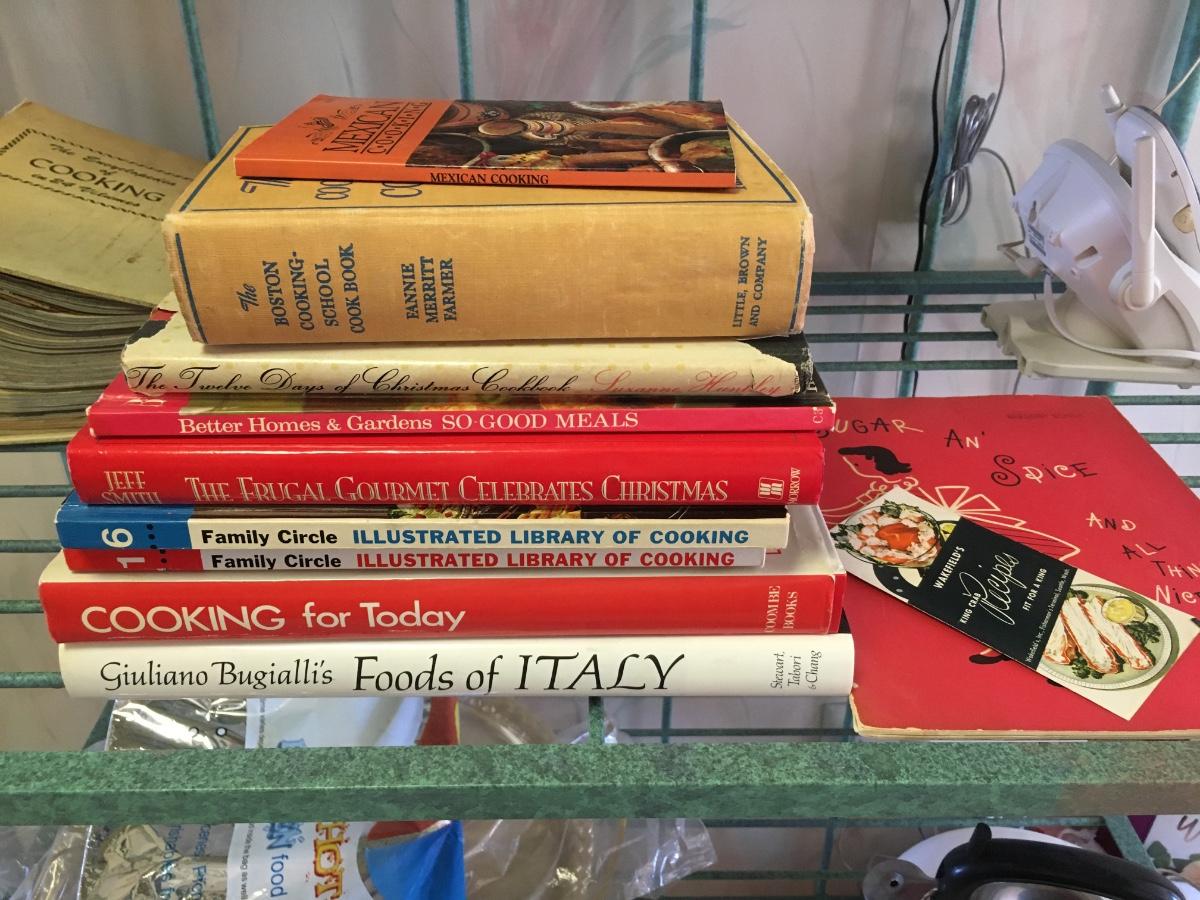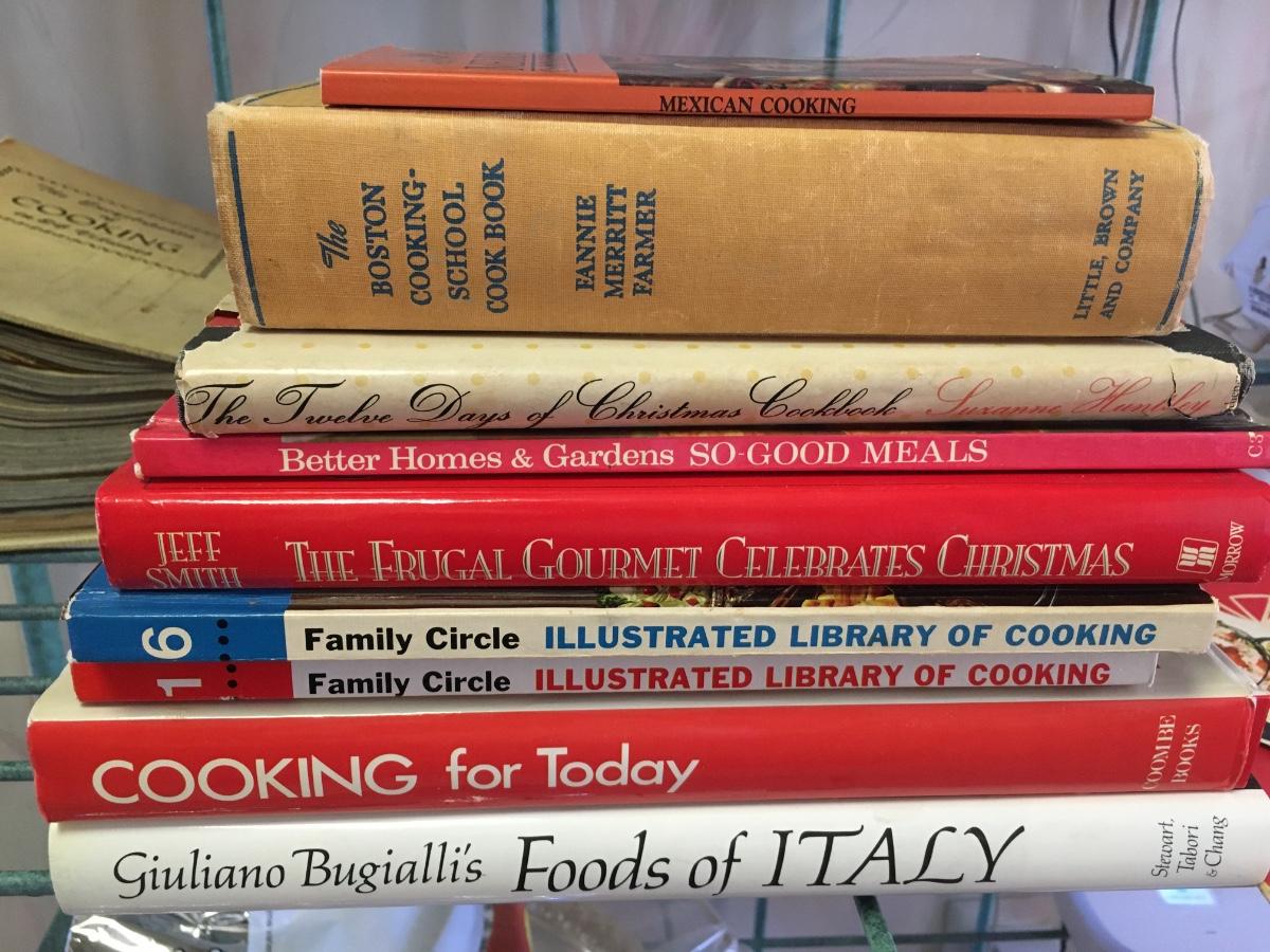 Stack of assorted cookbooks