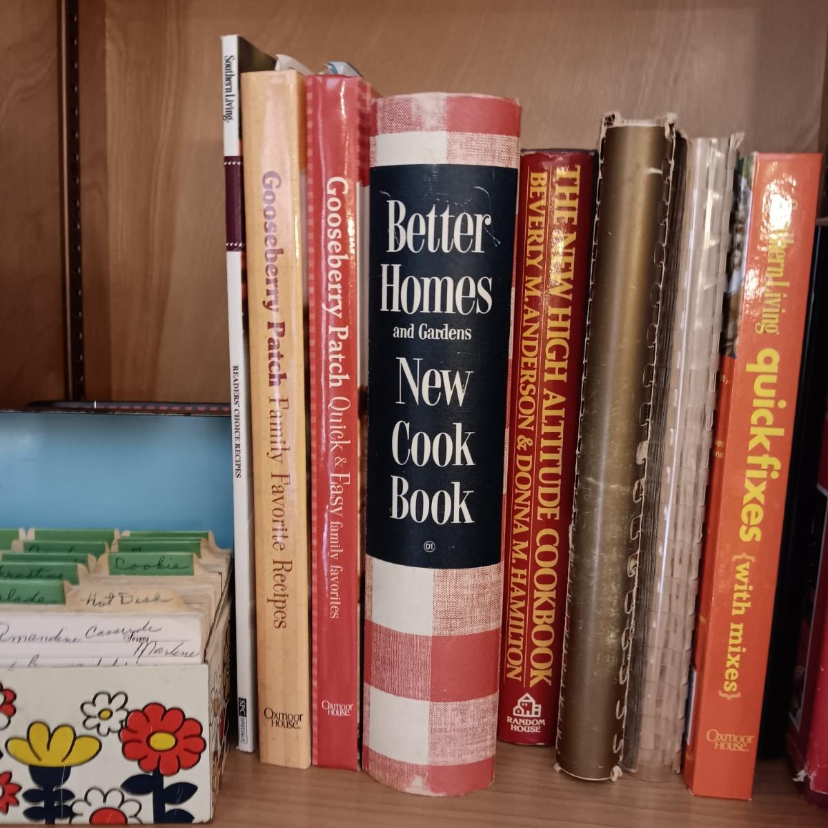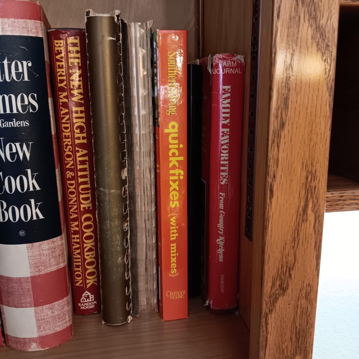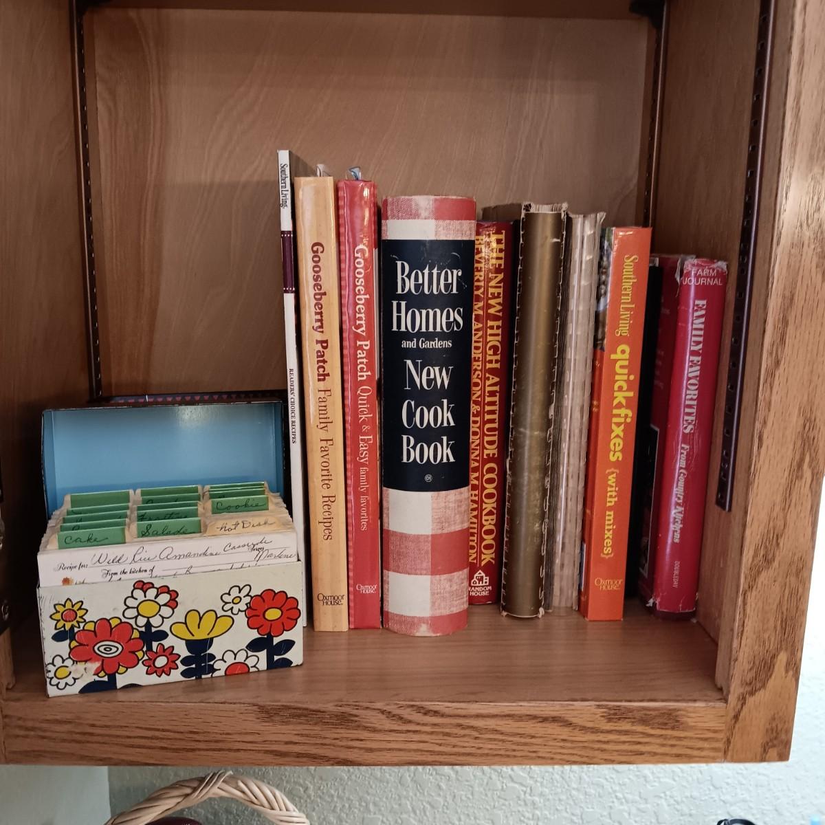 COOKBOOKS AND 2 BOXES FULL OF RECIPES