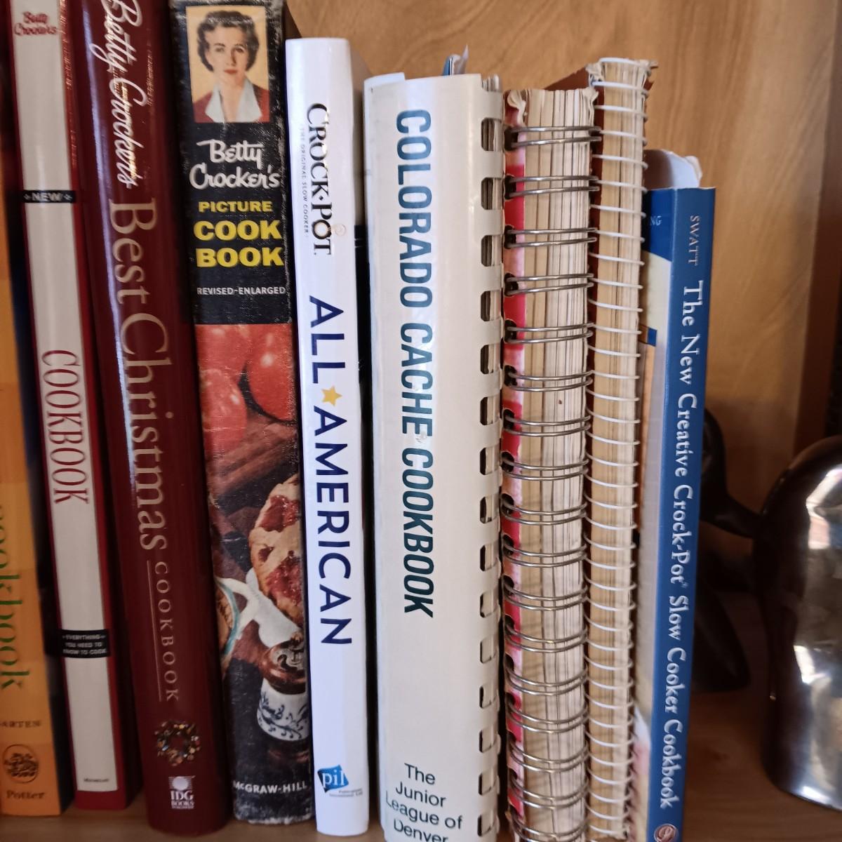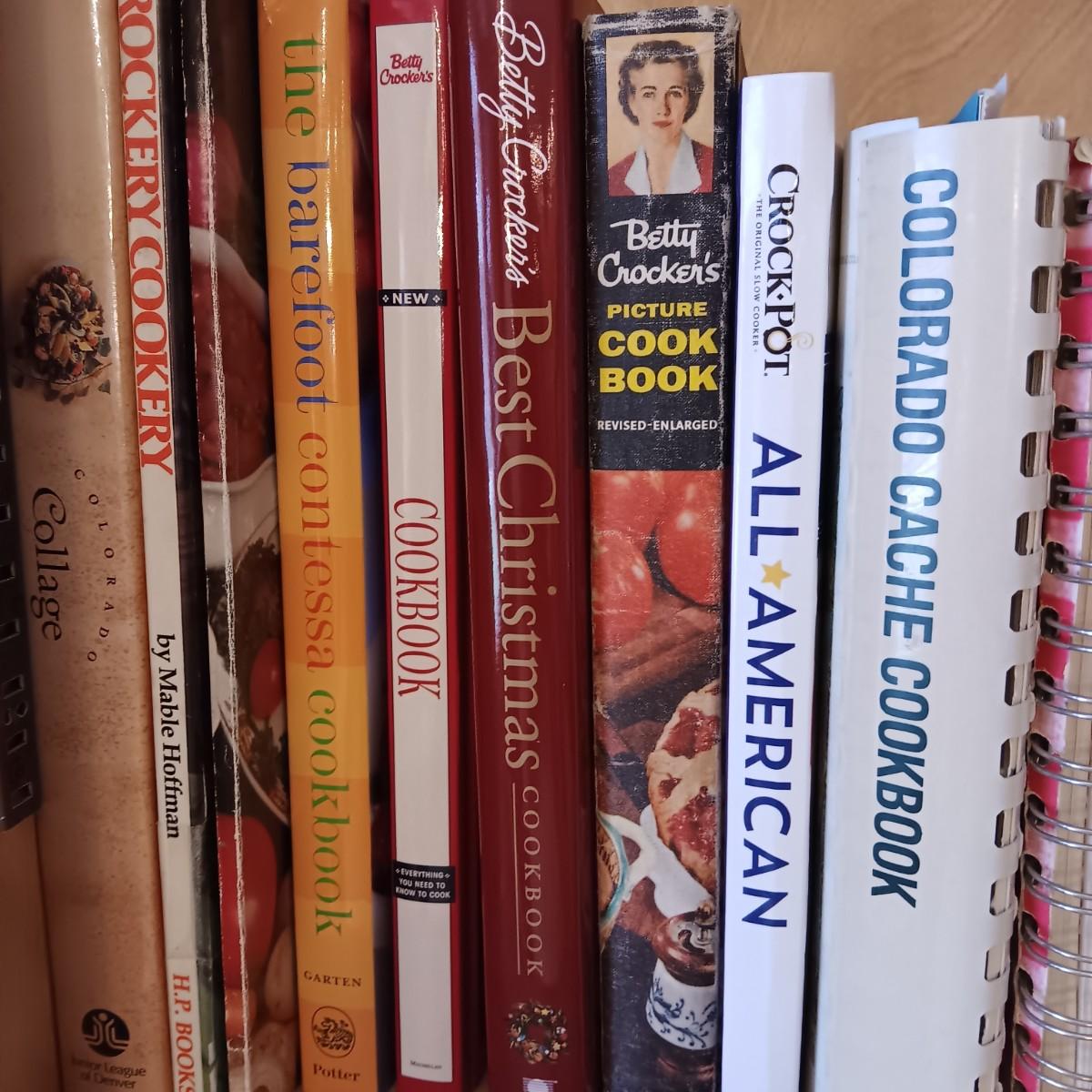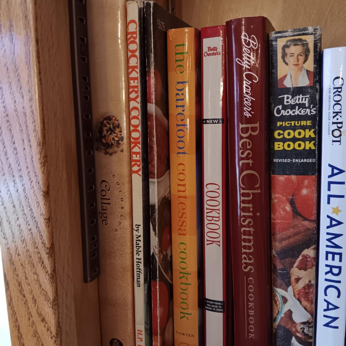 COOKBOOKS AND A PAIR OF BRASS DUCK BOOKENDS