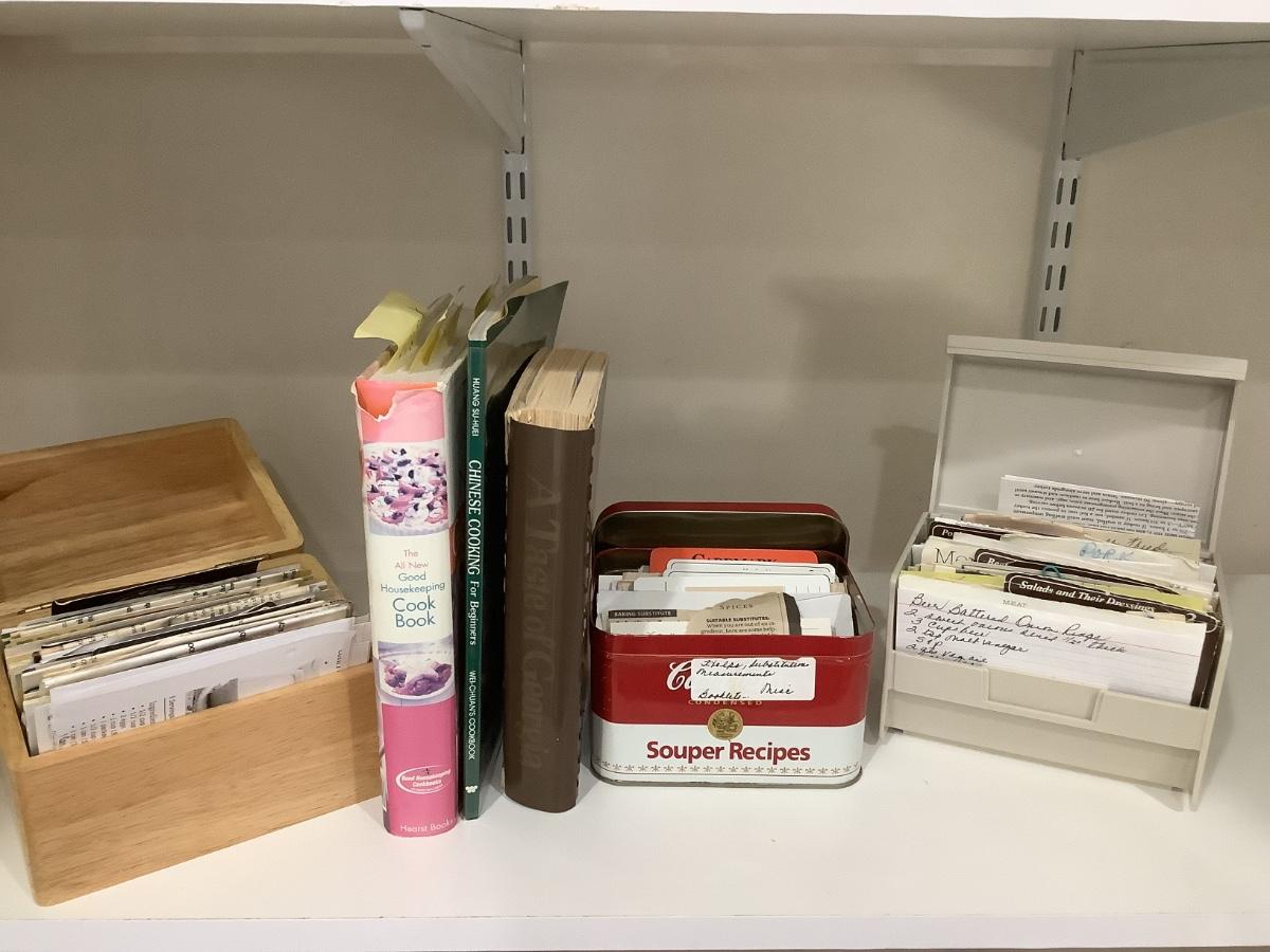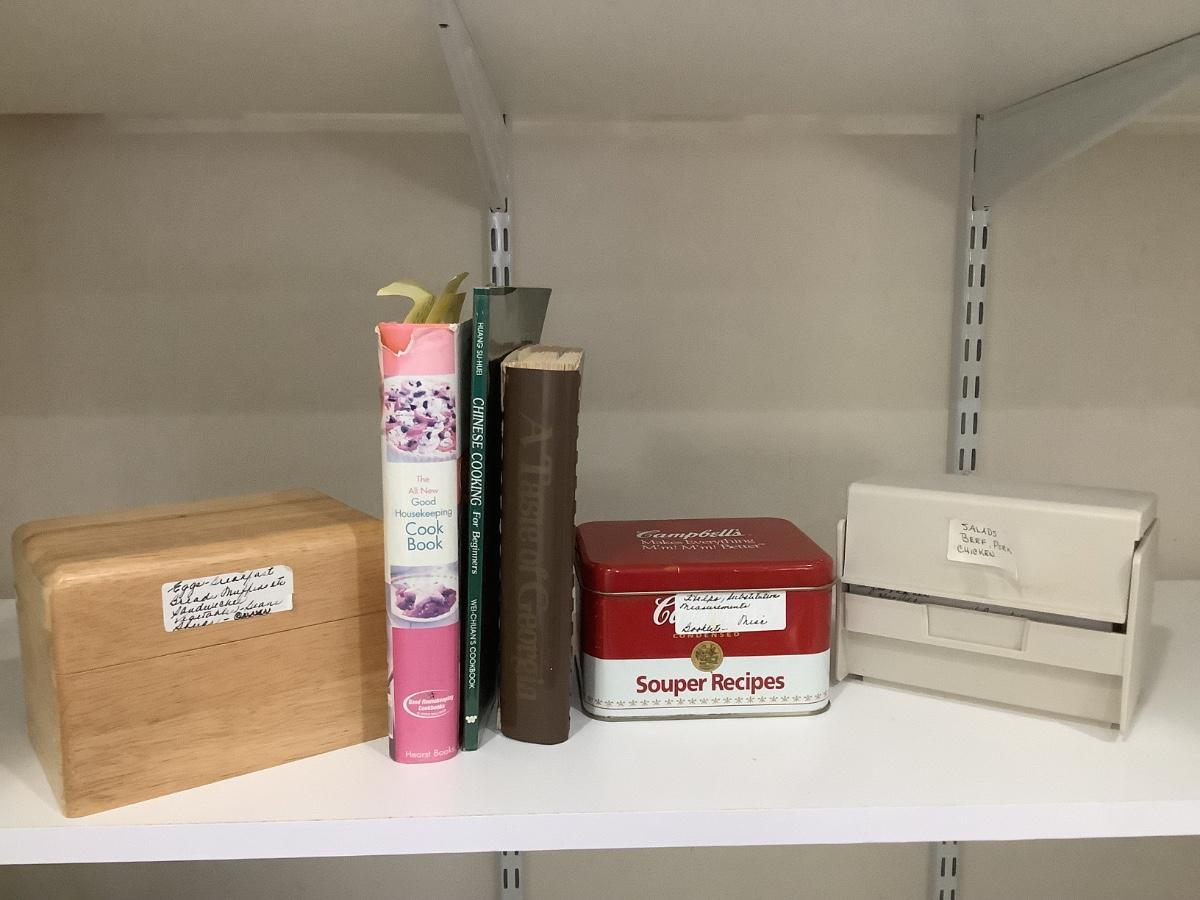 Cookbooks and full recipe boxes