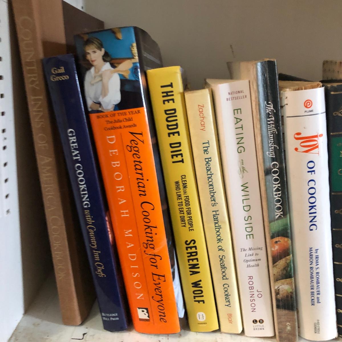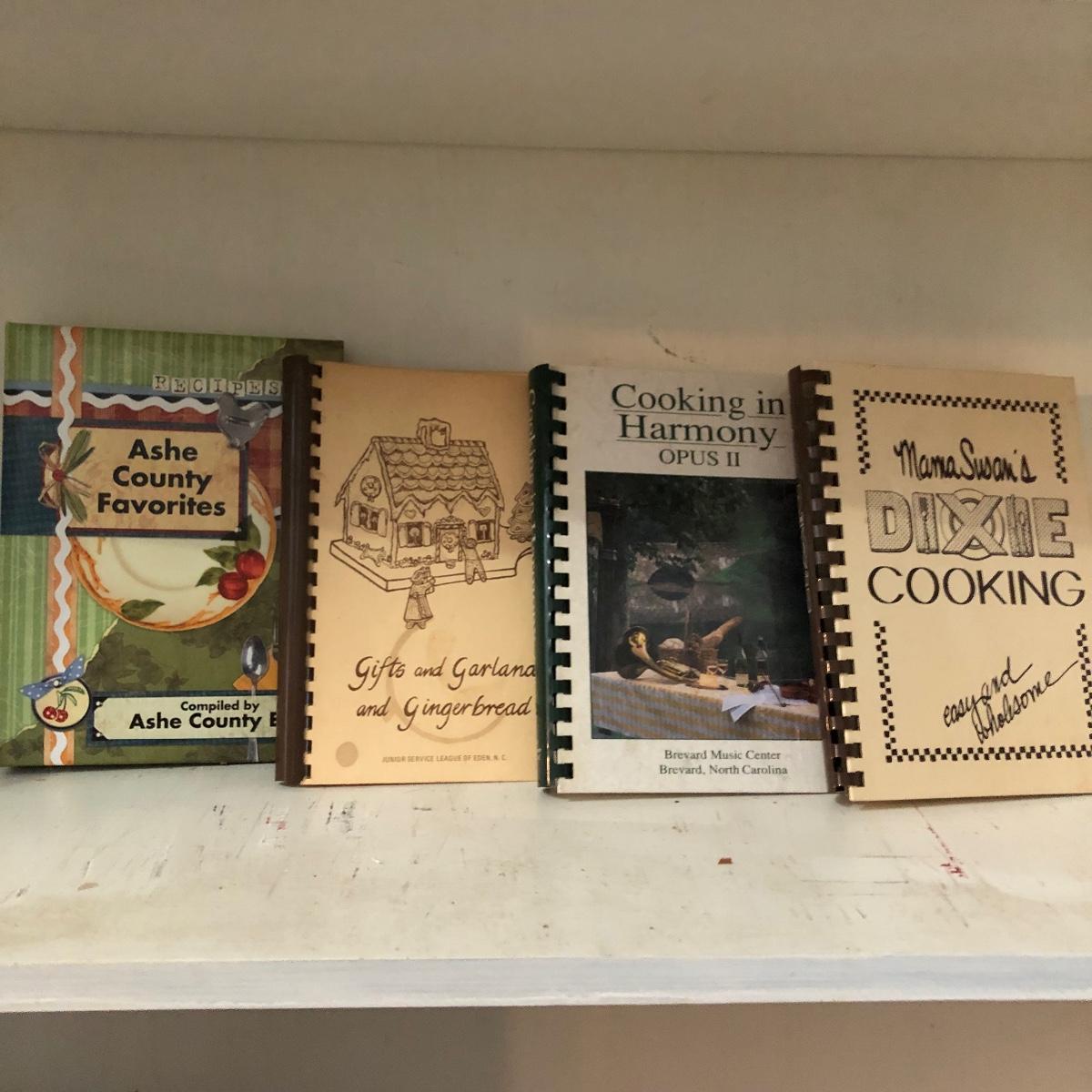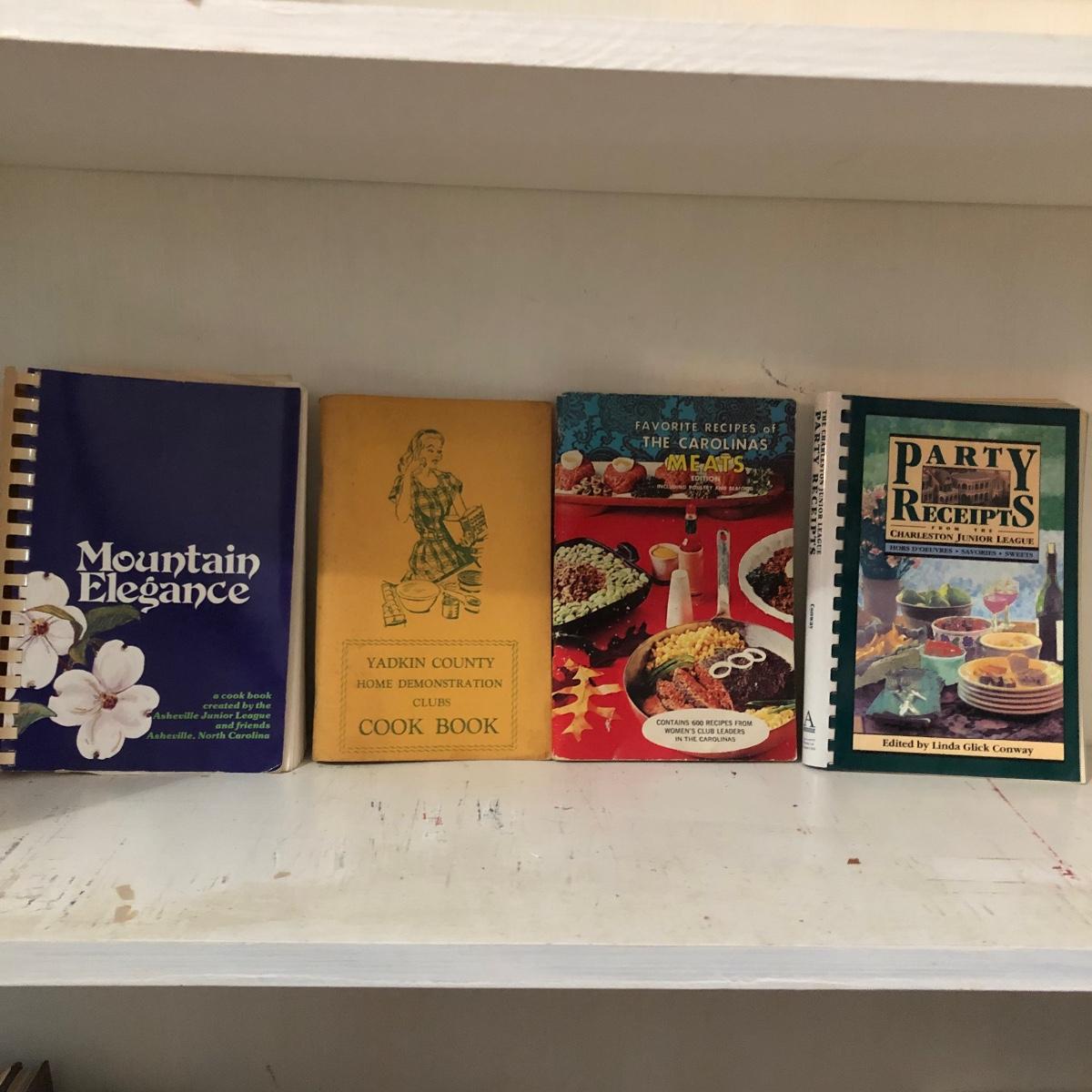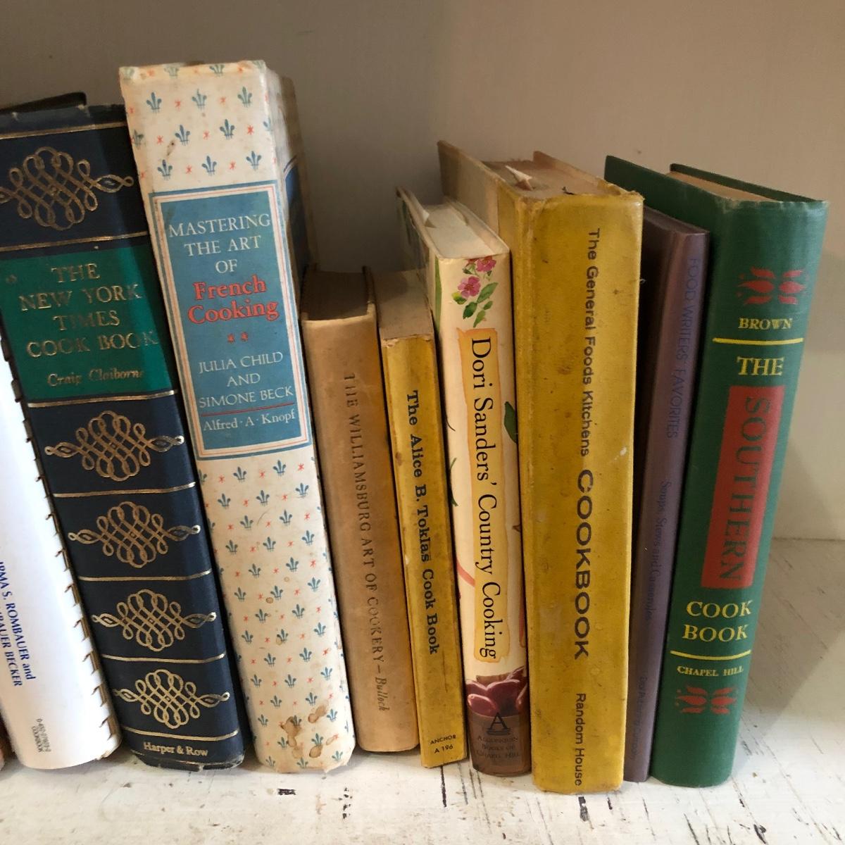 This lot contains books By Julia Child, James Beard, and titles including Joy of cooking, The Alice B Toklas Cook Book, The New York Times Cook book, The Dude Diet,Moosewood Cookbook and more. Also includes vintage booklets and a assortment of WNC and North Carolina cookbooks.