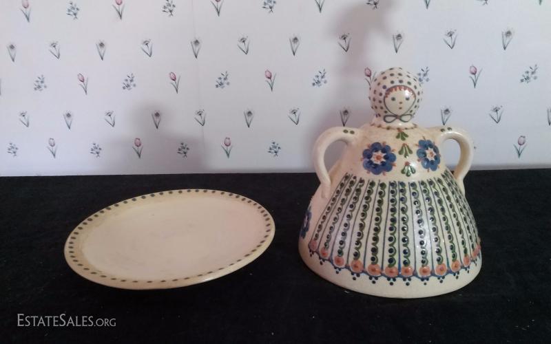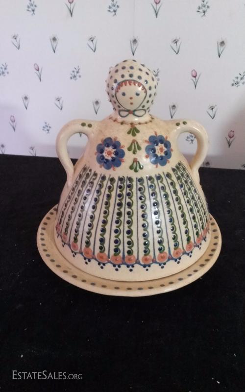 Lady on a plate. Tacky from grease and needs a thorough cleaning.