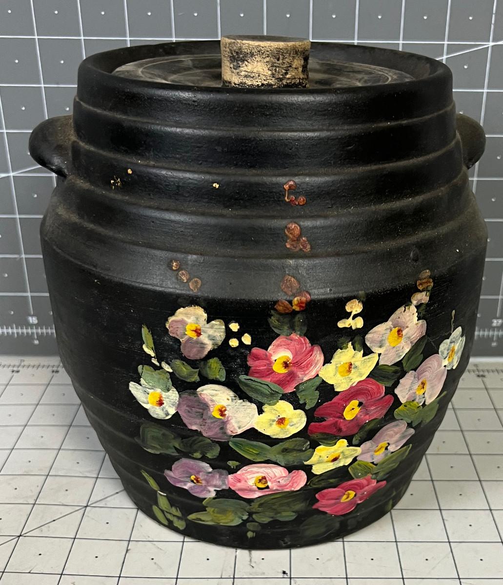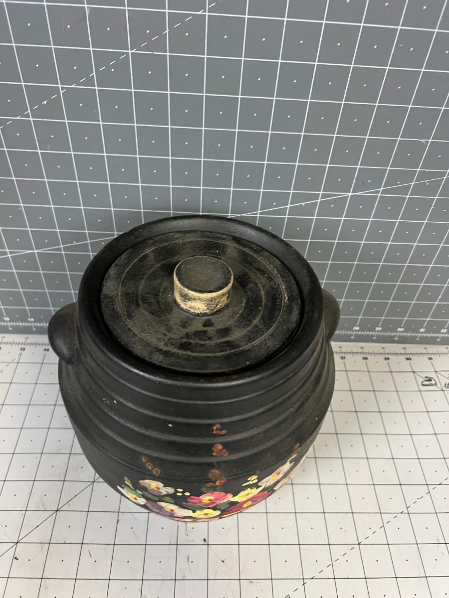 Cookie Jar , Black with Flowers
