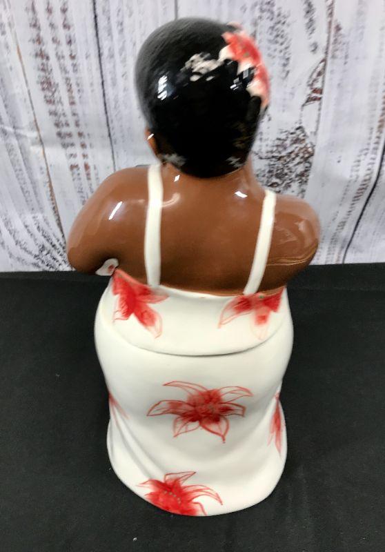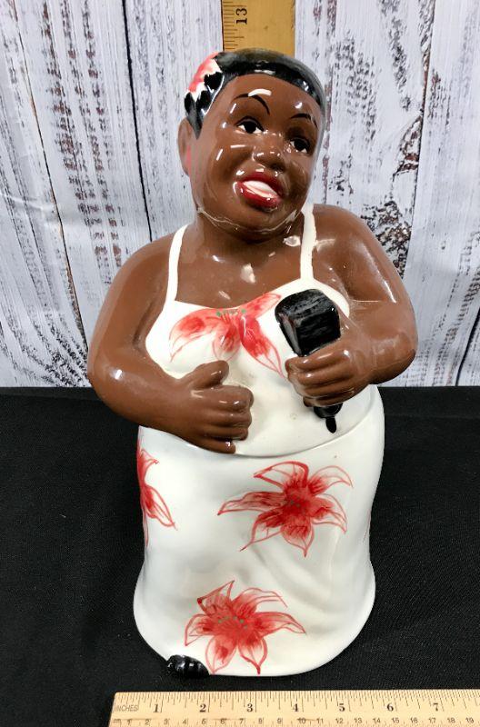 ACKUSA jazz singer cookie jar. Jazz Singer Lady, Red & White Dress Cookie Jar stands about 12", Made by Casa Vero