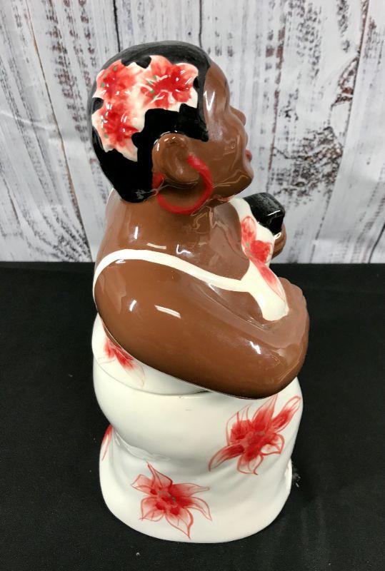 Woman in Red Floral Dress Jazz Singer Cookie Jar by Casa Vero