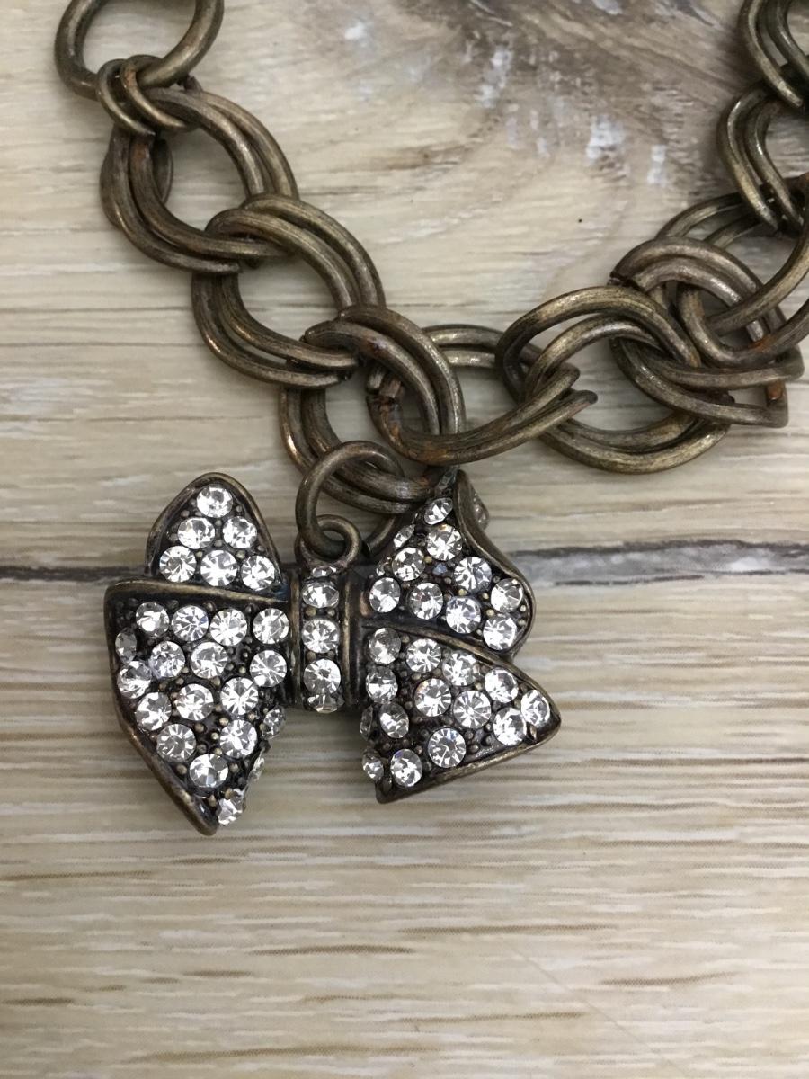 Cookie, lee bronze, toned toggle bracelet with rhinestone bow charm