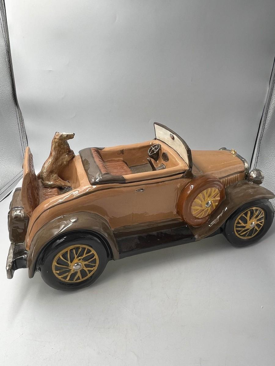 Convertible car with dog