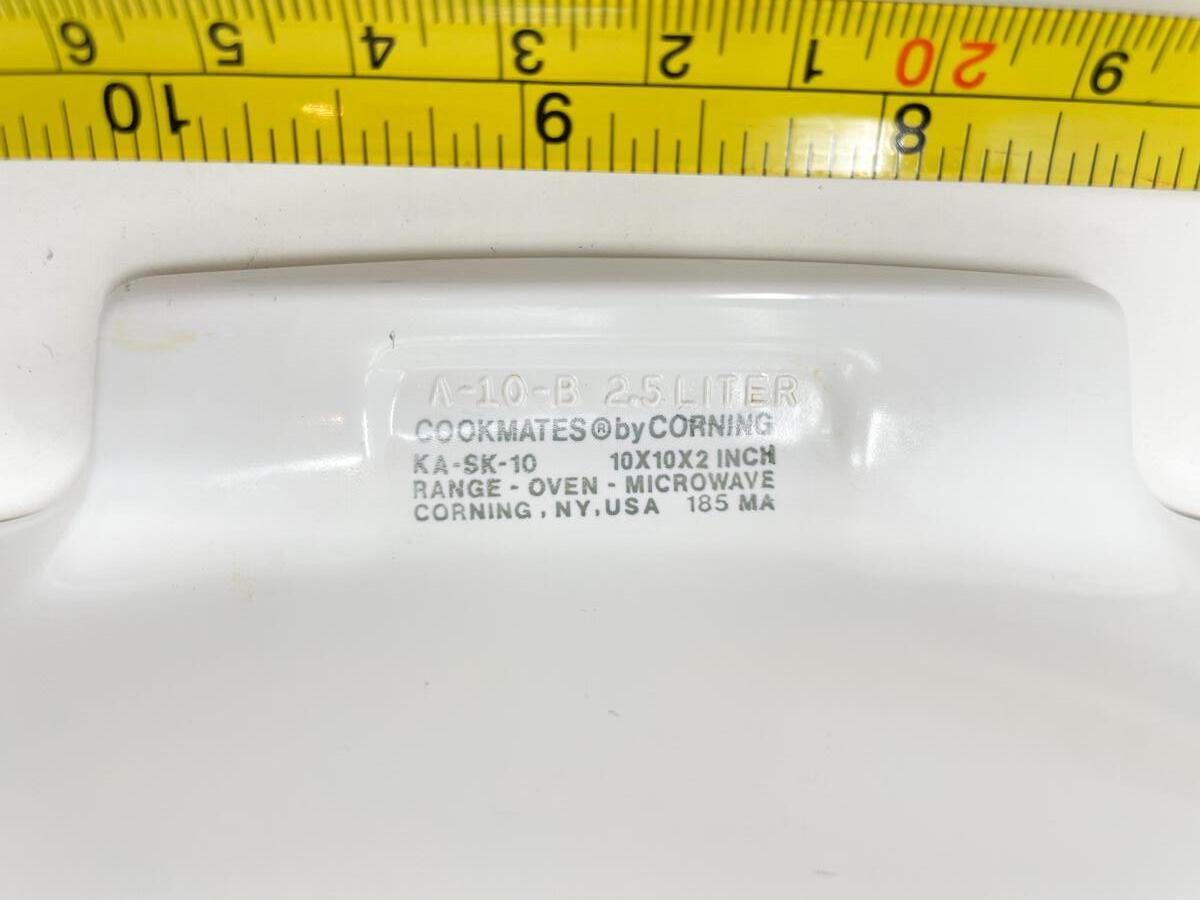 COOKMATES BY CORNING 10” SQUARE CASSEROLE DISH W/ PYREX GLASS LID
