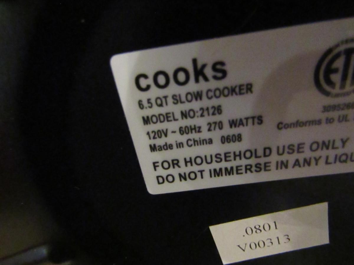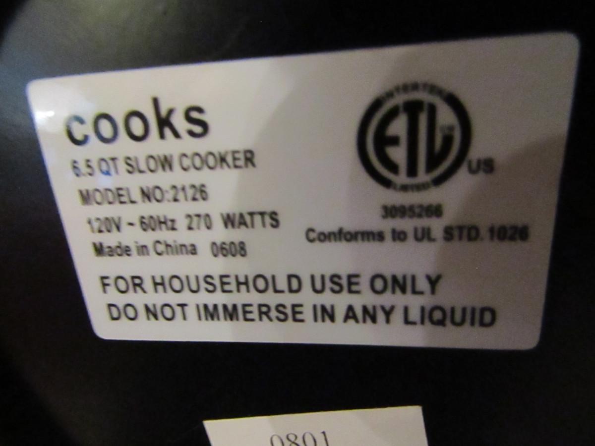 Cook's Brand Stainless Steel Finish Slow Cooker- 6 1/2 Quart Capacity (Untested)
