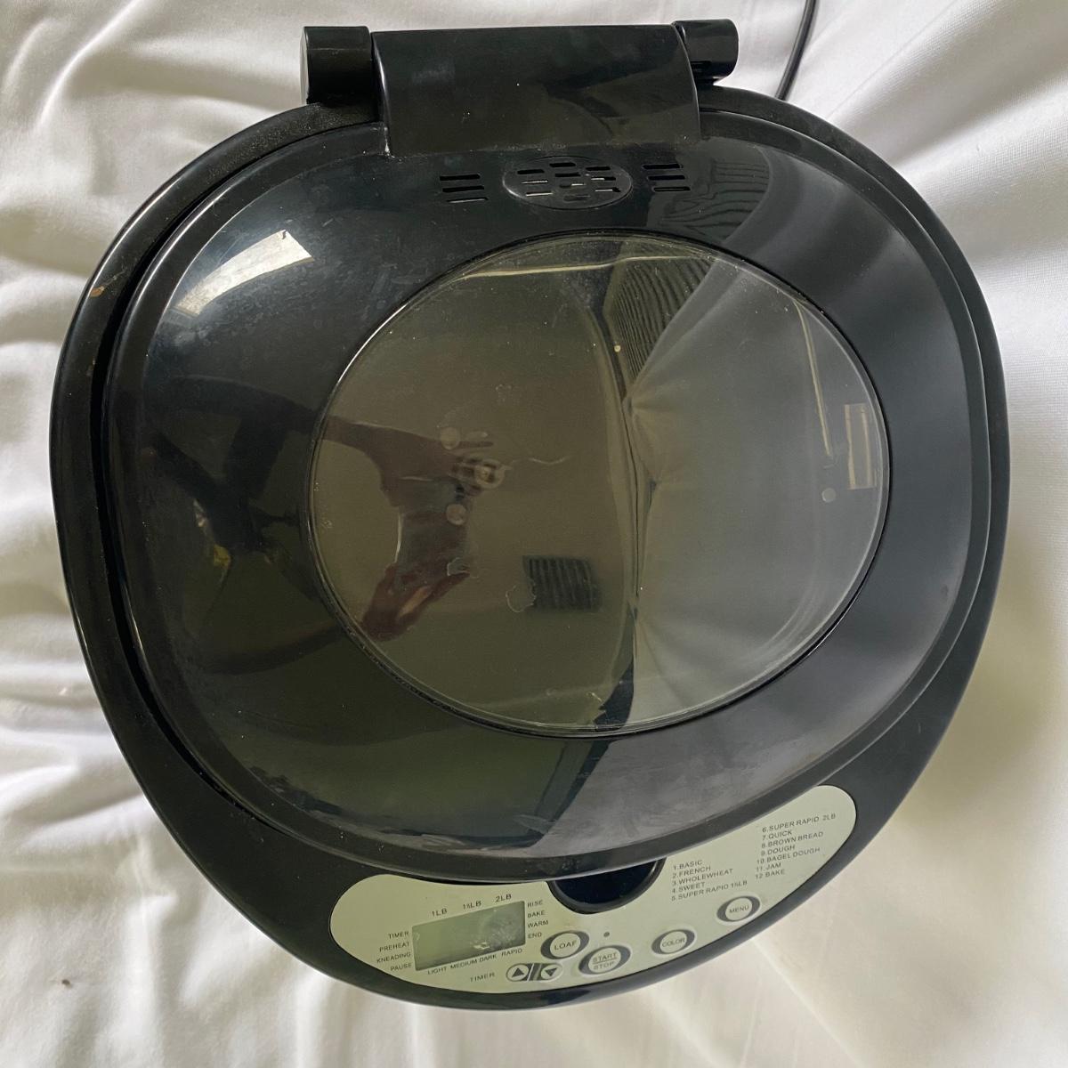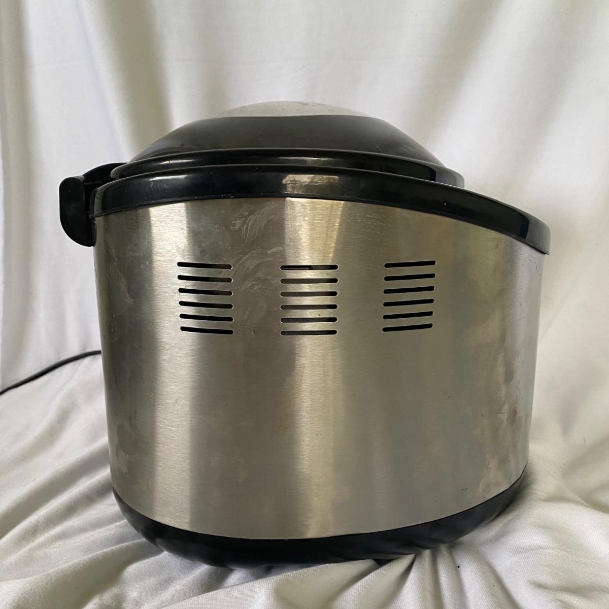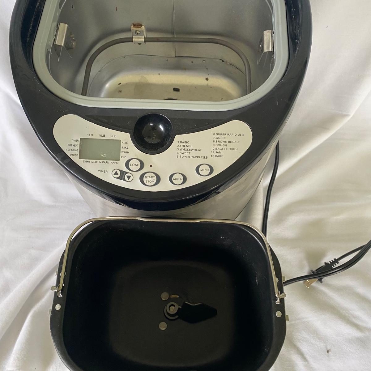 One Cooks Breadmaker, includes two types of measuring cups, and the owners manual. In great working condition, hardly needs cleaned and one Pretso Bread Slicing Guide.