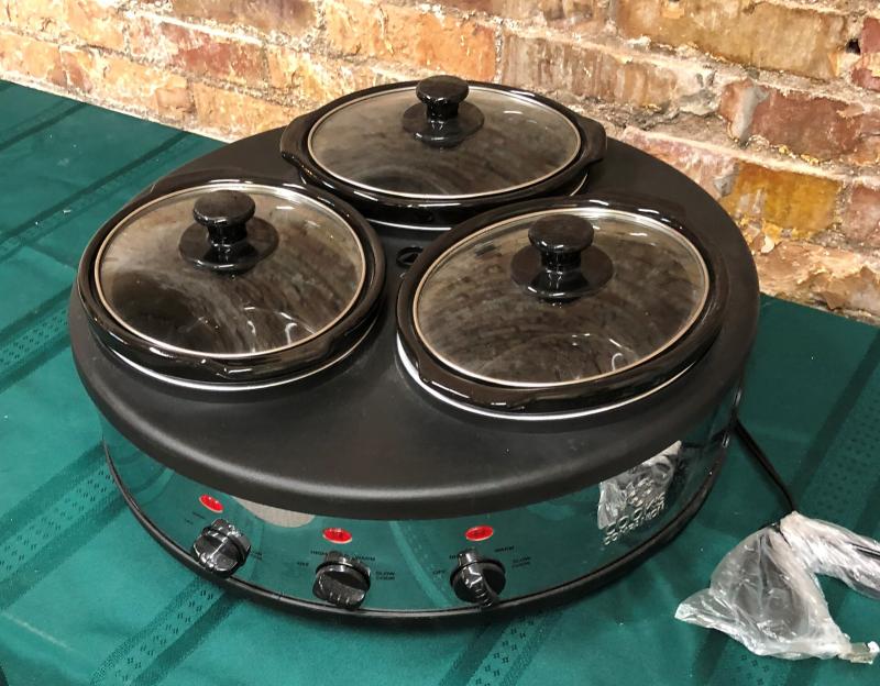 New without the box here is an electric warmer/server from Cook's Companion...Three pots...Deluxe appliance...