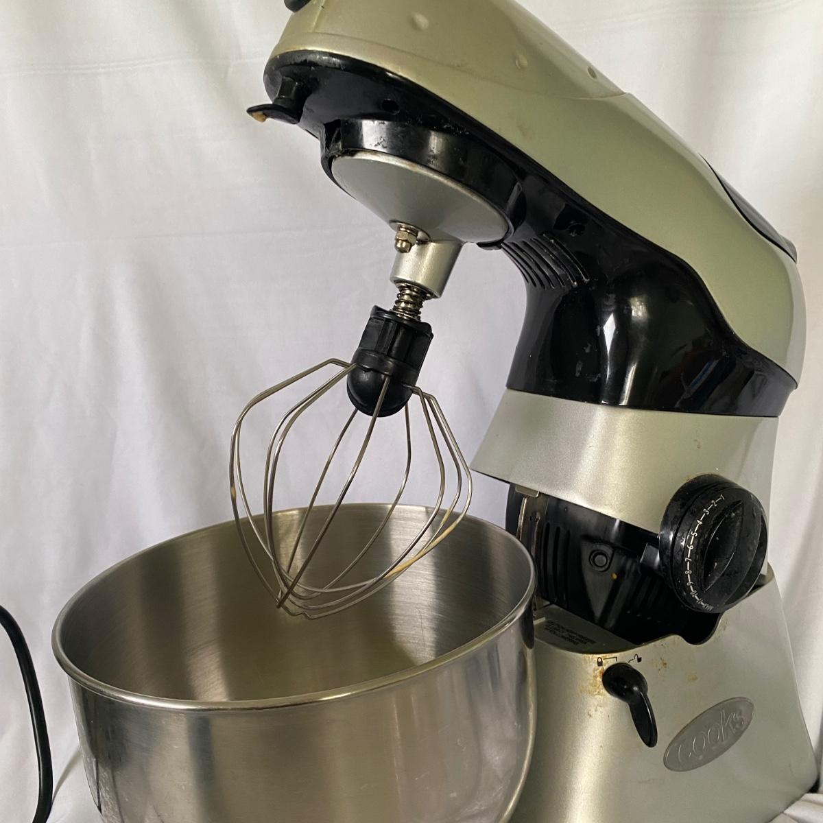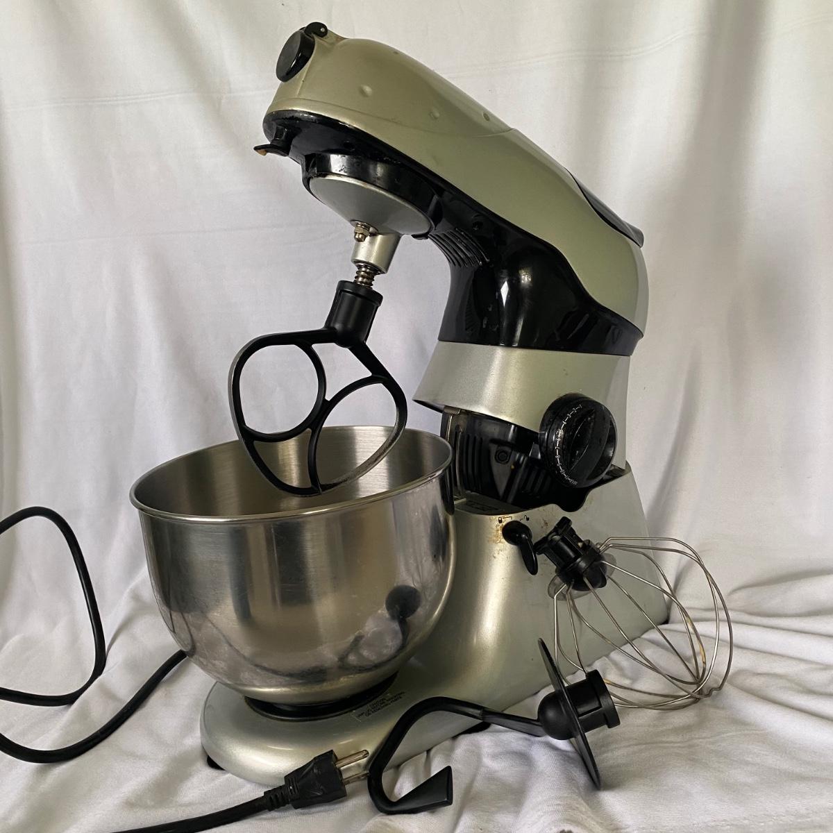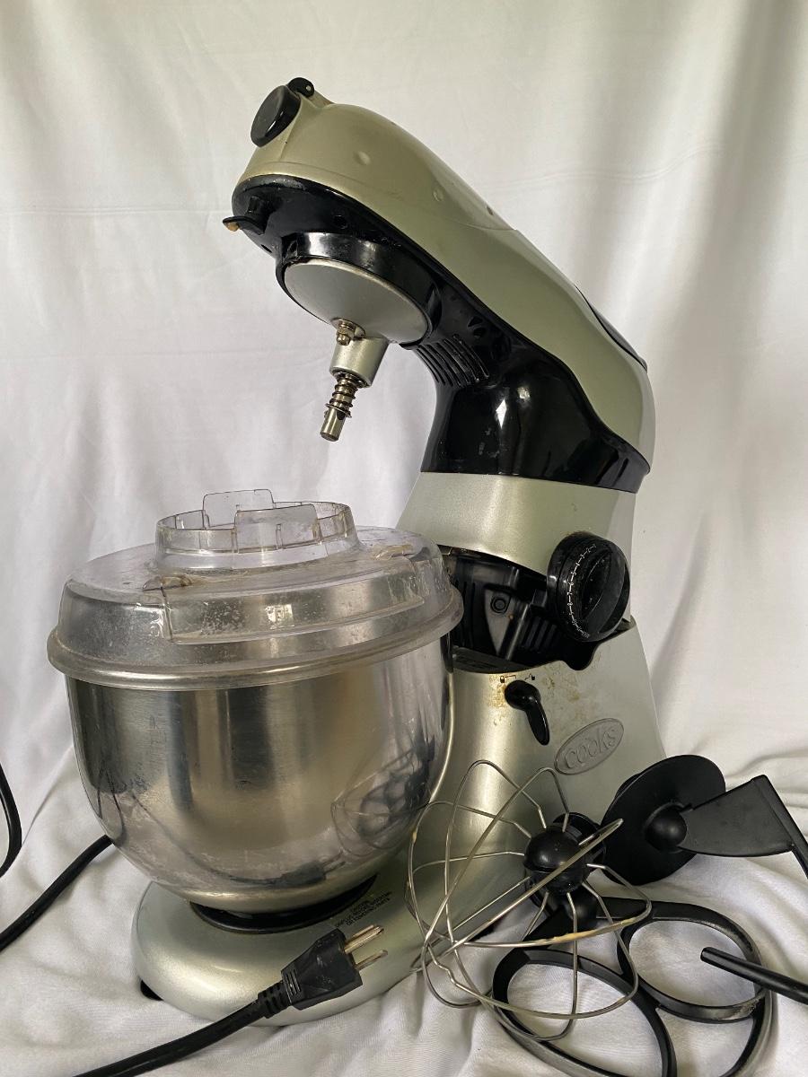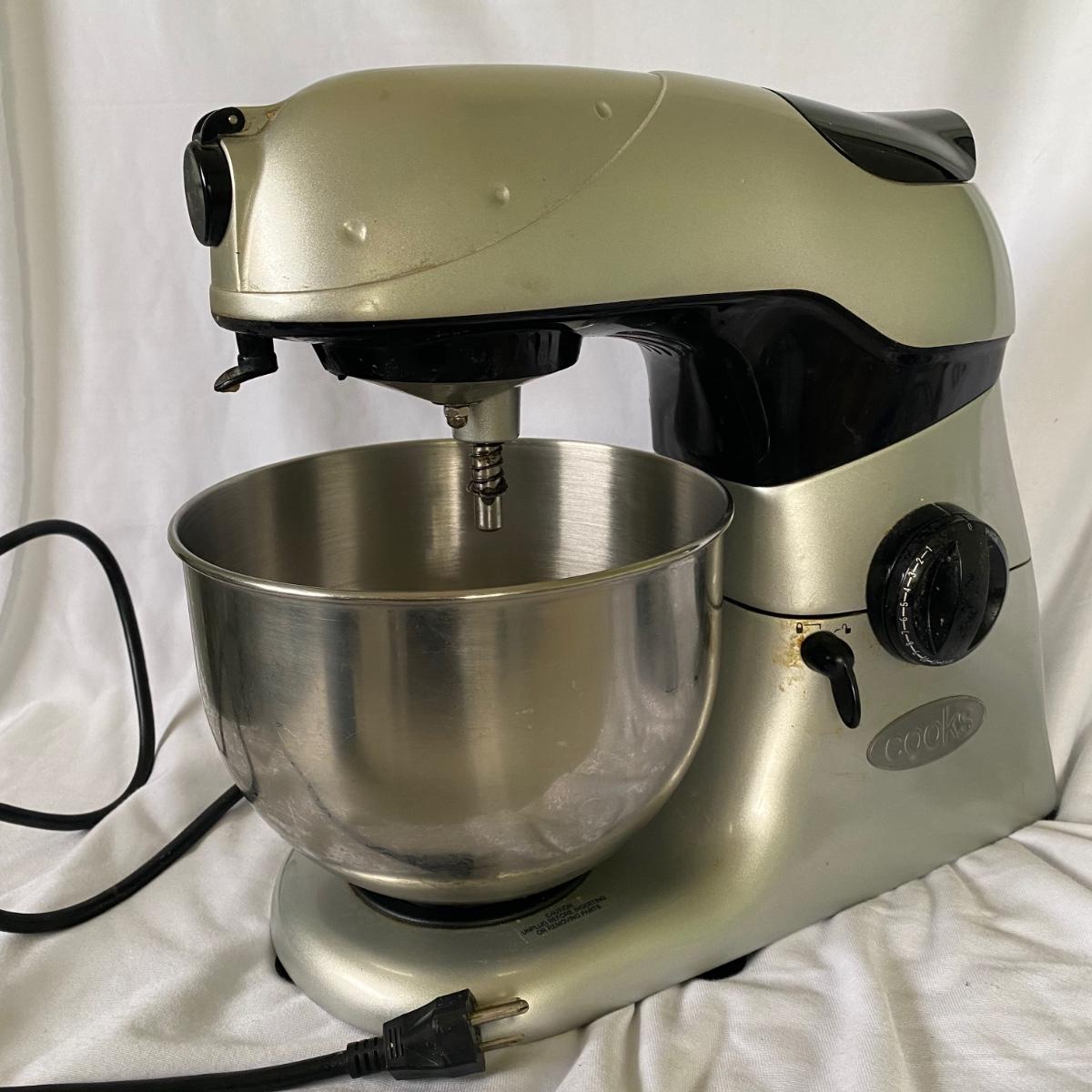 14” tall Cooks Mixing bowl, comes with mixing bowl cap, and three mixers. In great working condition just needs a clean.
