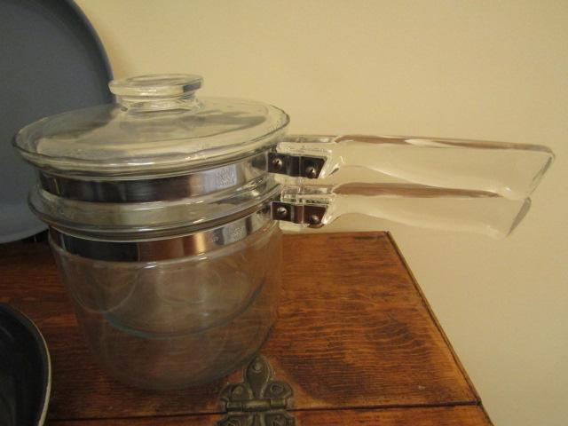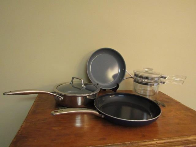 Cookware (Pyrex Double Boiler and 2 Pans are Henckels)