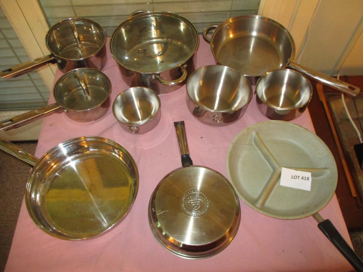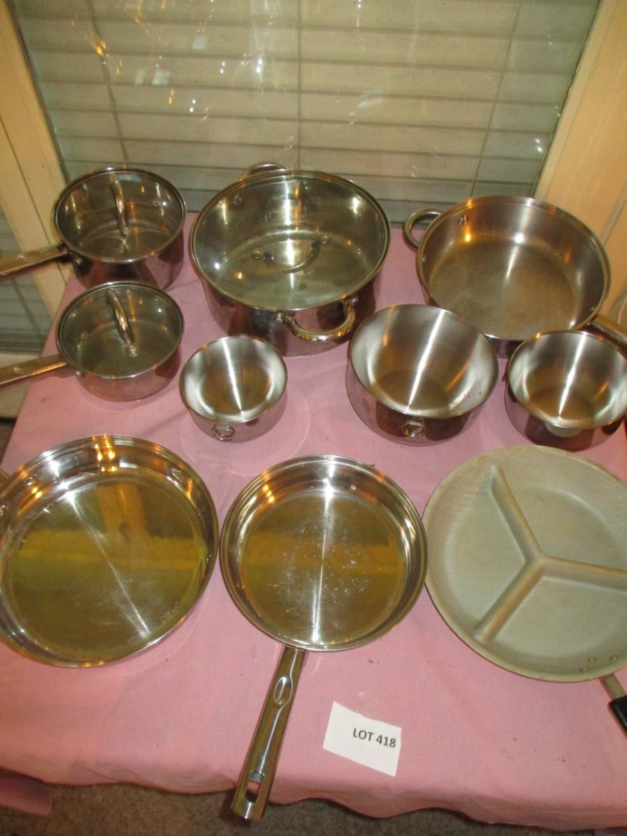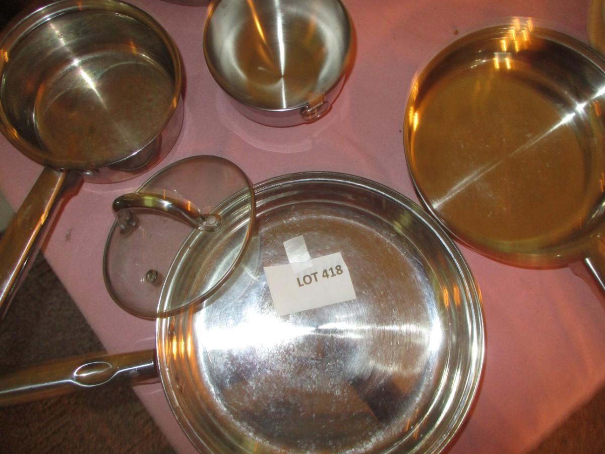 Phillippe Richard Cookware. 3 Stainless nesting bowls. Frying pan