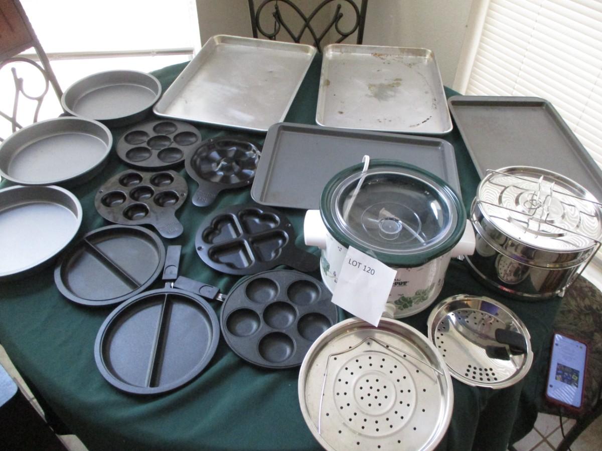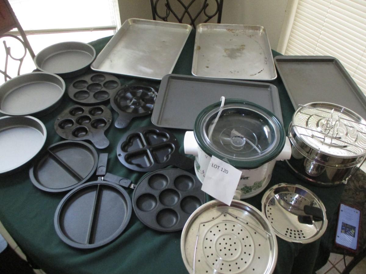 Cookware-crockpot, cookie sheets, muffin, steamers
