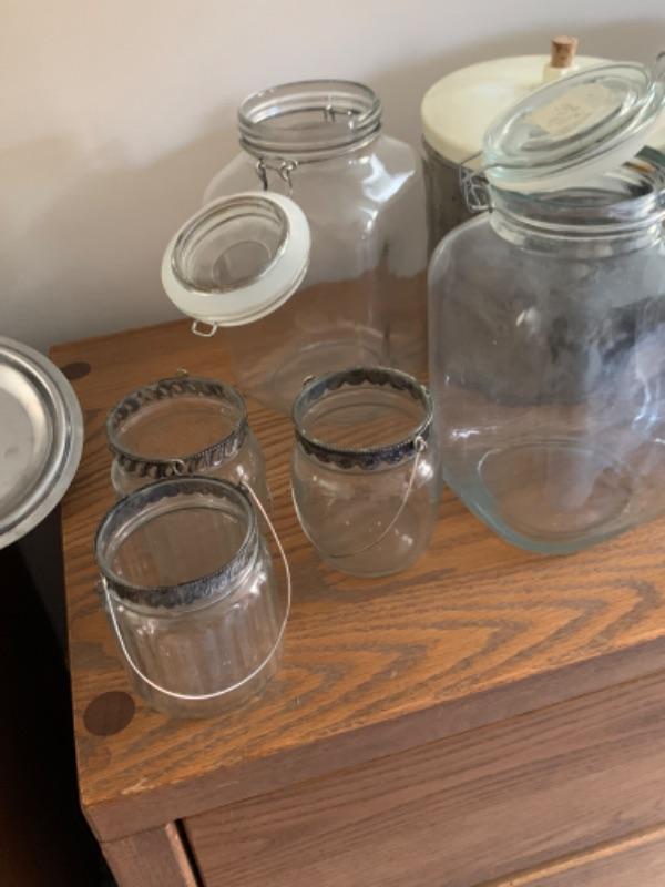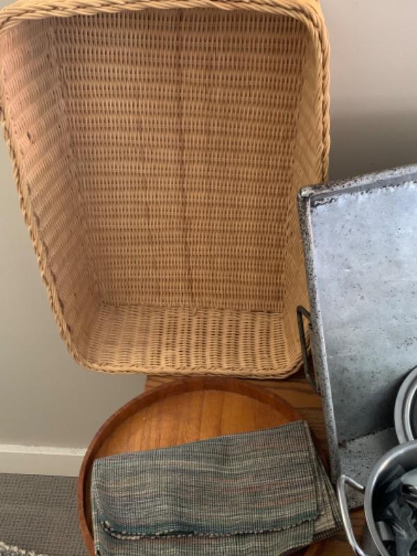 Cookware“”pots, large fish poacher, glassware, syrup bottles, basket, etc.
