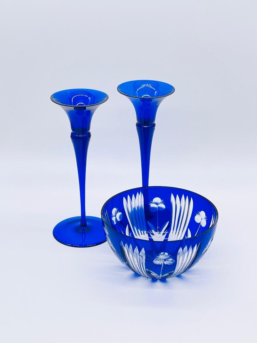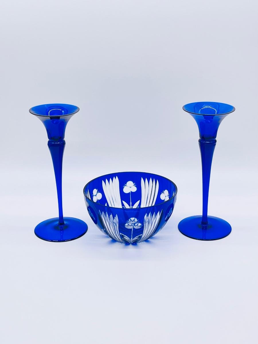 Cut Bowl = 3.5” H x 6.75” Round ~ Pair of Candle Sticks = 9” H x 3.75” Round