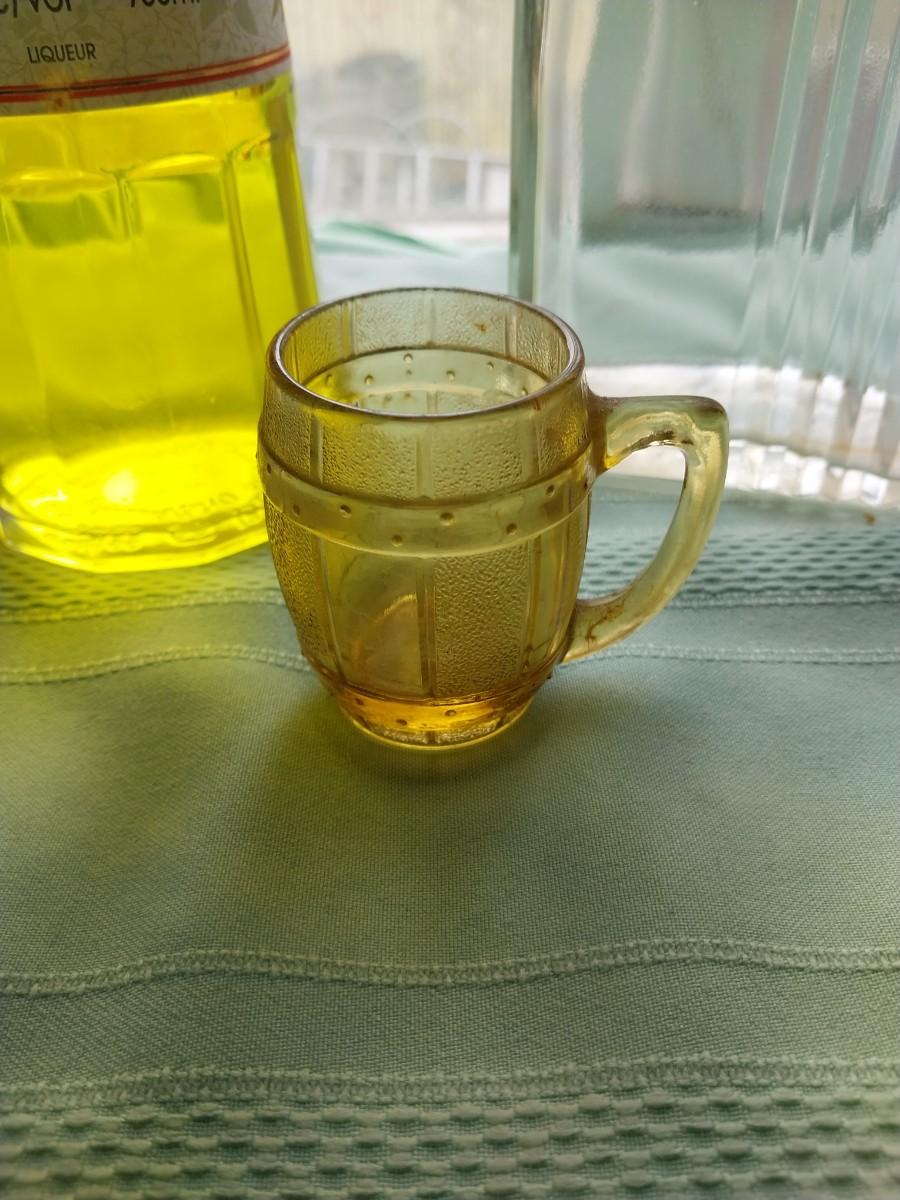 COOL GALLIANO BOTTLE-DECANTER AND AMBER COLOR MUG