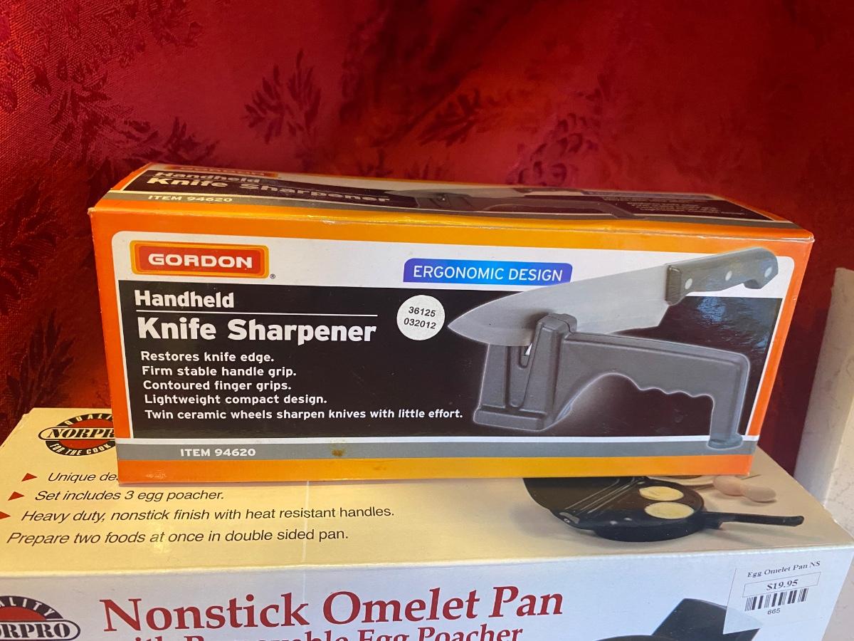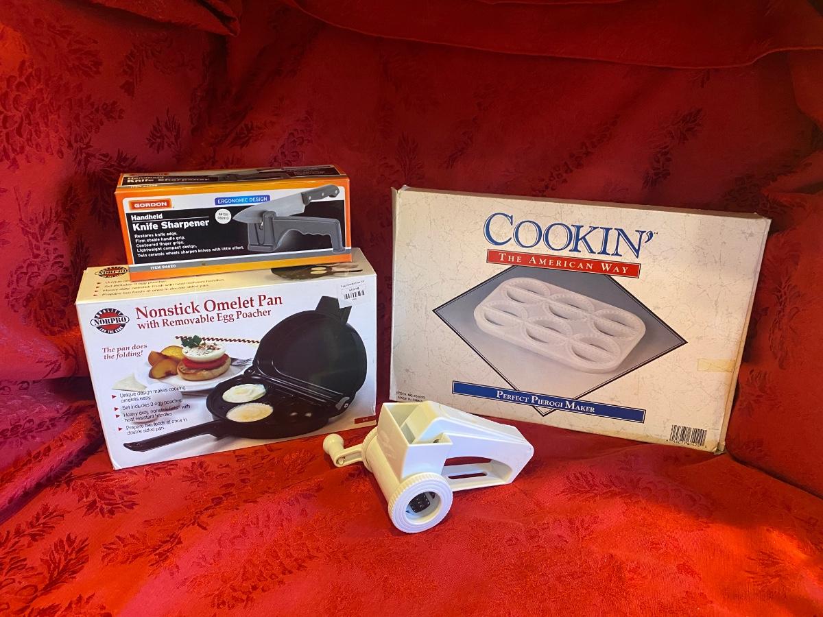 KITCHEN GADGETS, GRATER, OMELETTE PAN, KNIFE SHARPENER AND MORE!