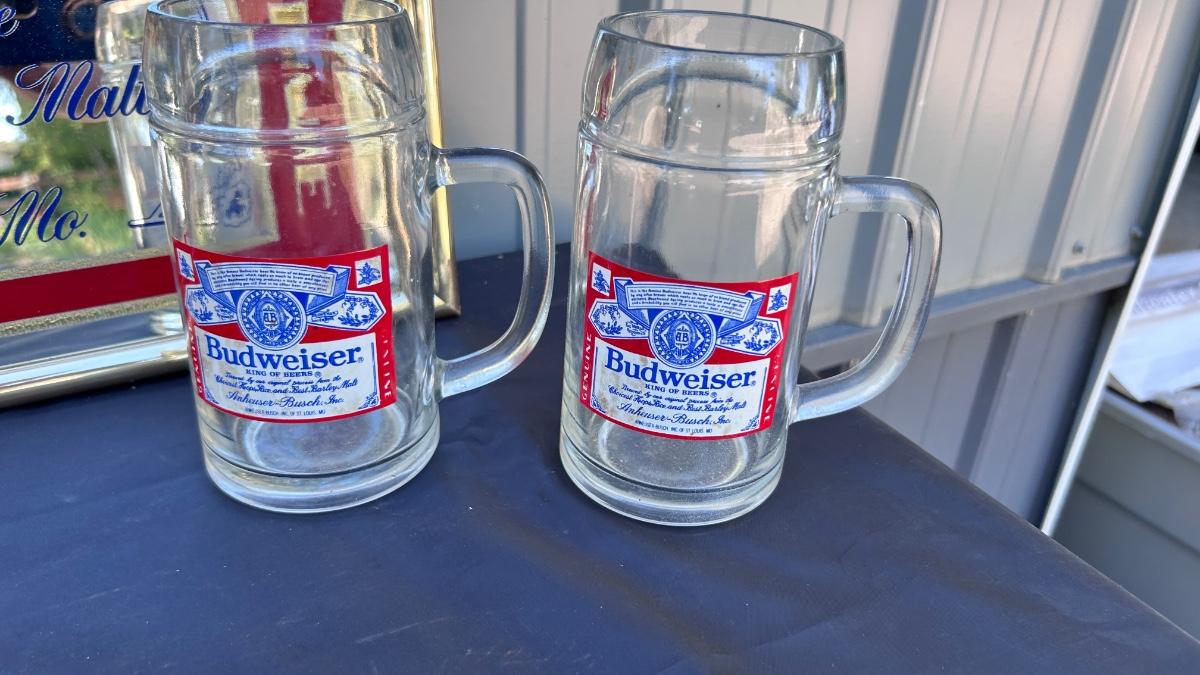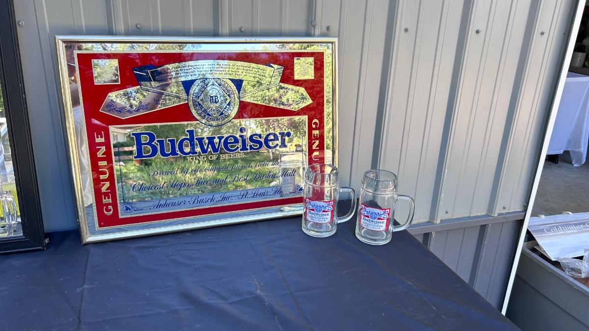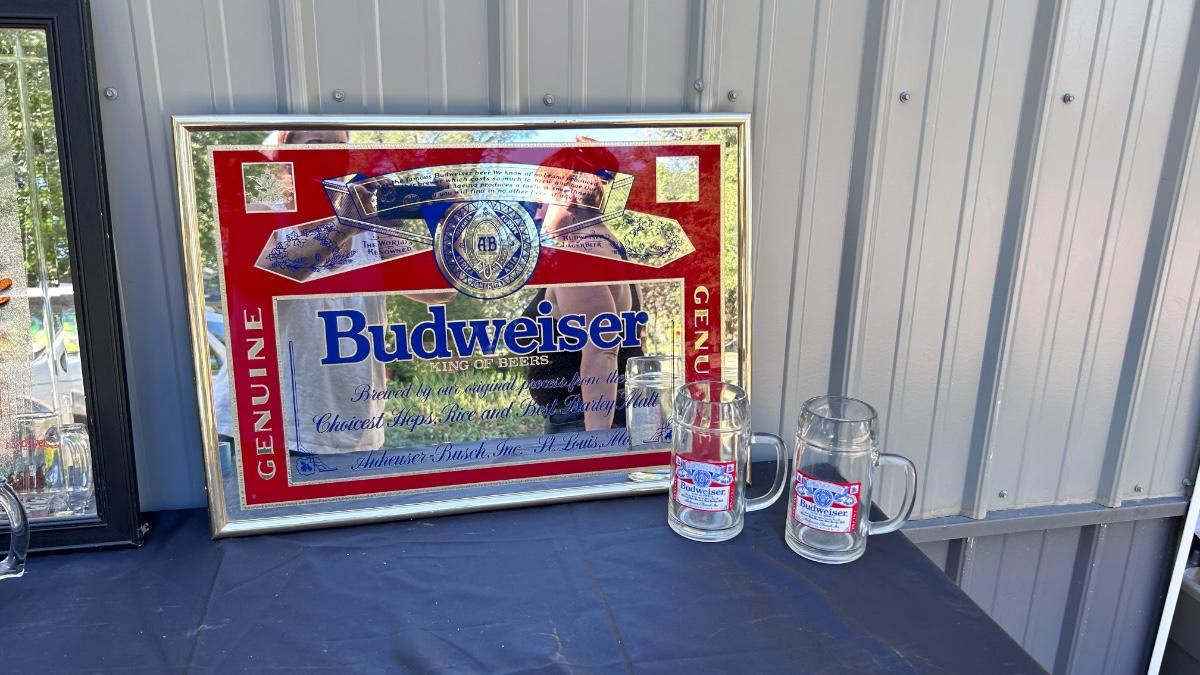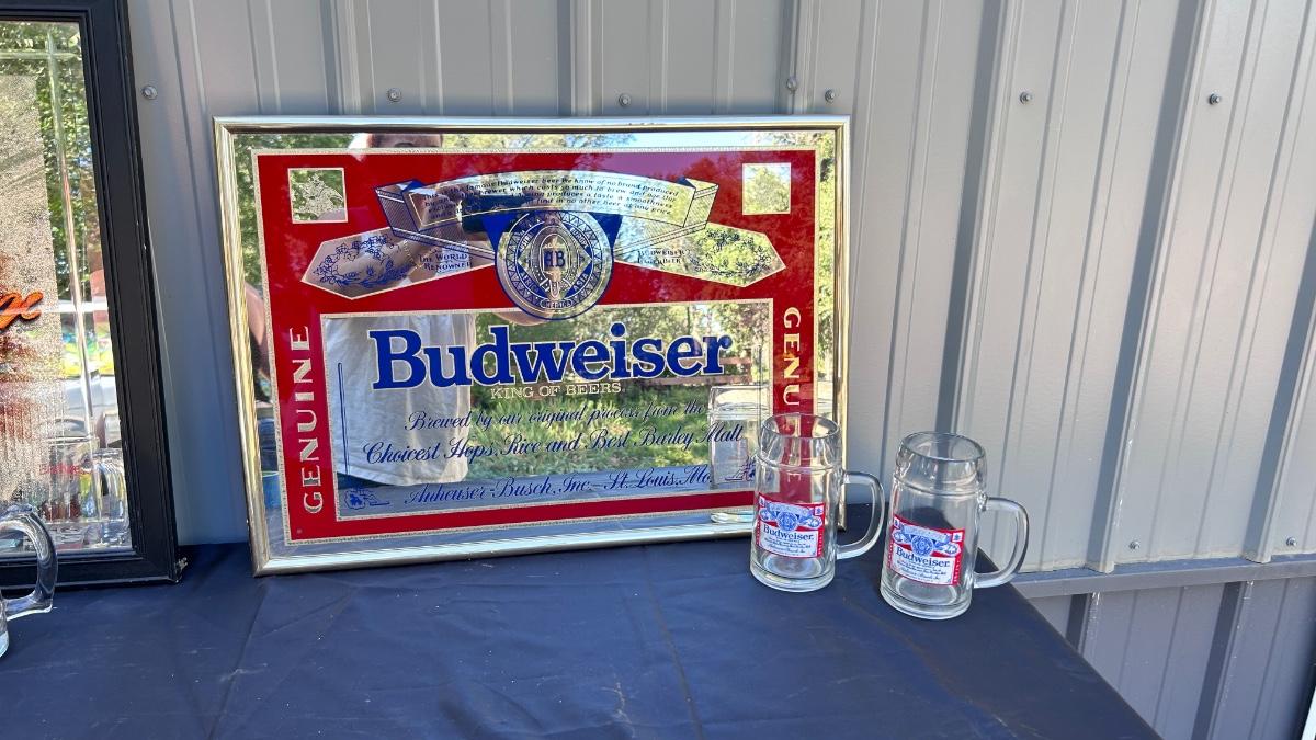 COOL OLD BUDWEISER MIRROR AND BEER MUGS