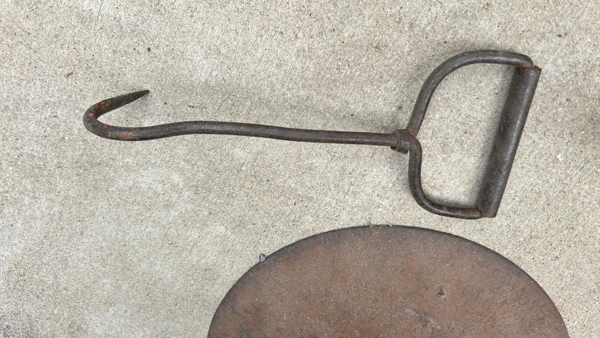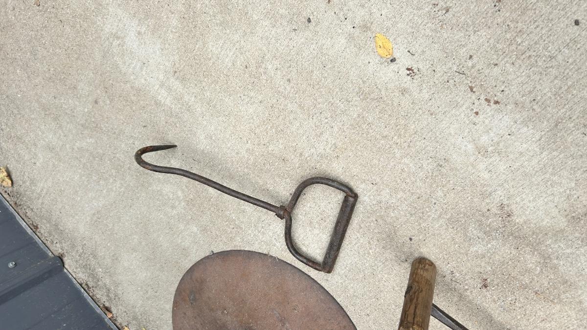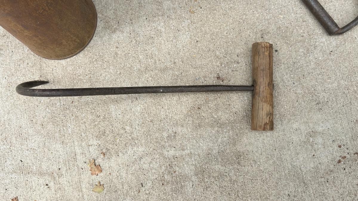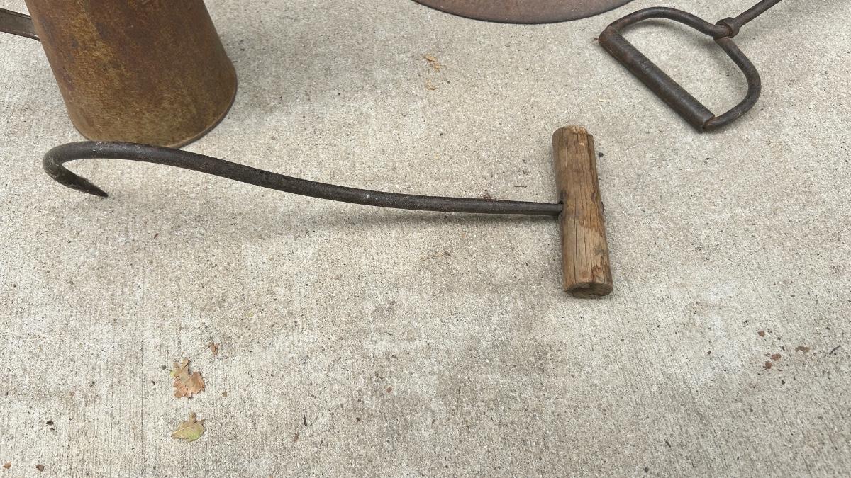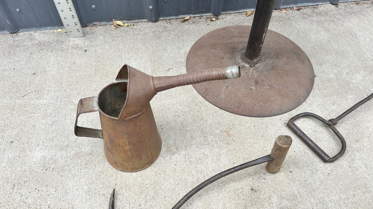 COOL OLD TRACTOR SEAT CHAIR, OIL CAN, & HAY HOOKS