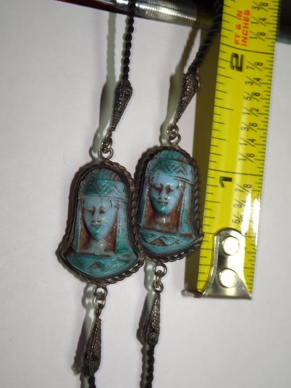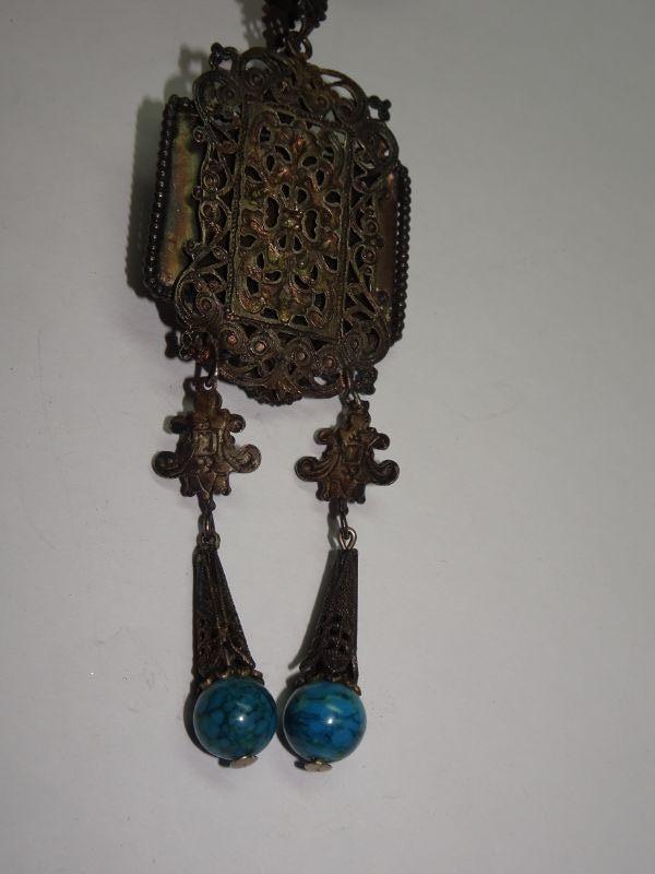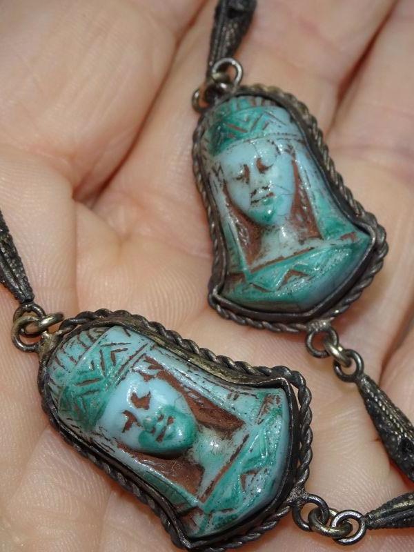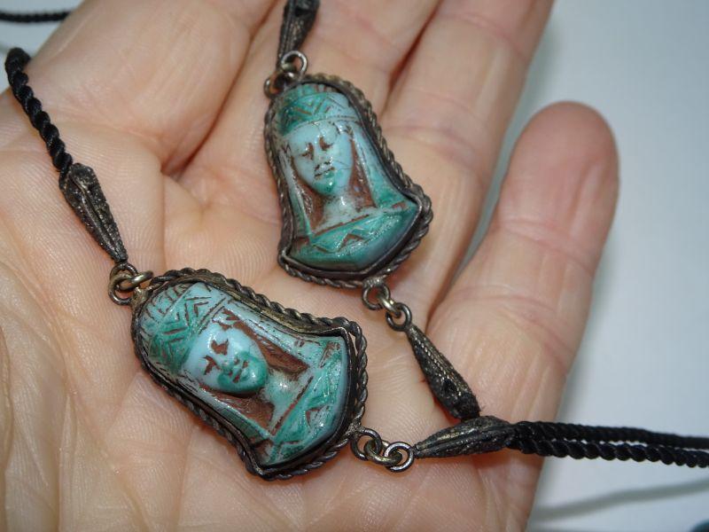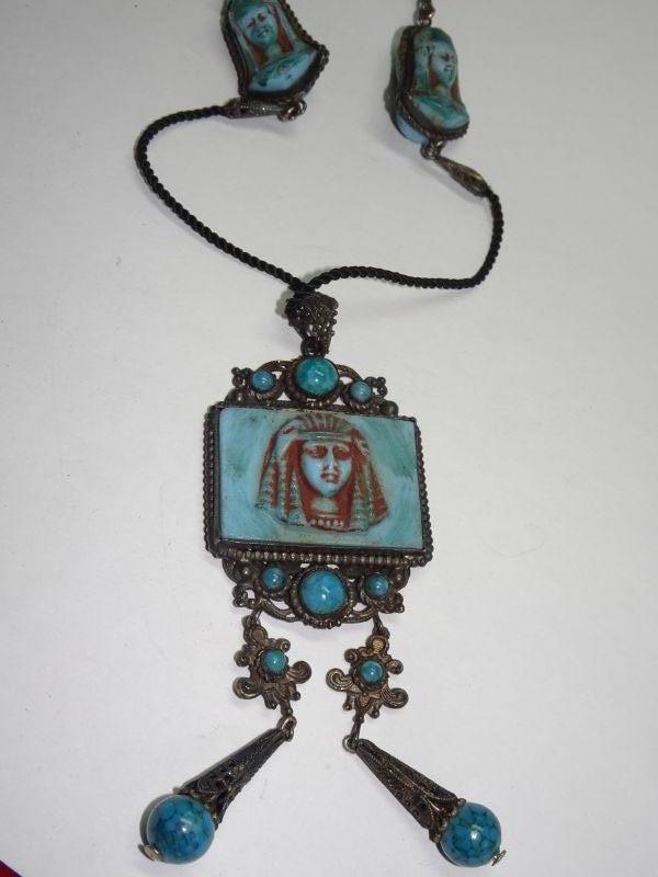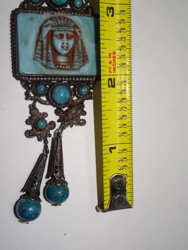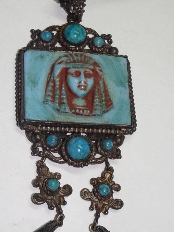 Unusual Egyptian Goddess Pendant Necklace, Faux Turquoise Stones
