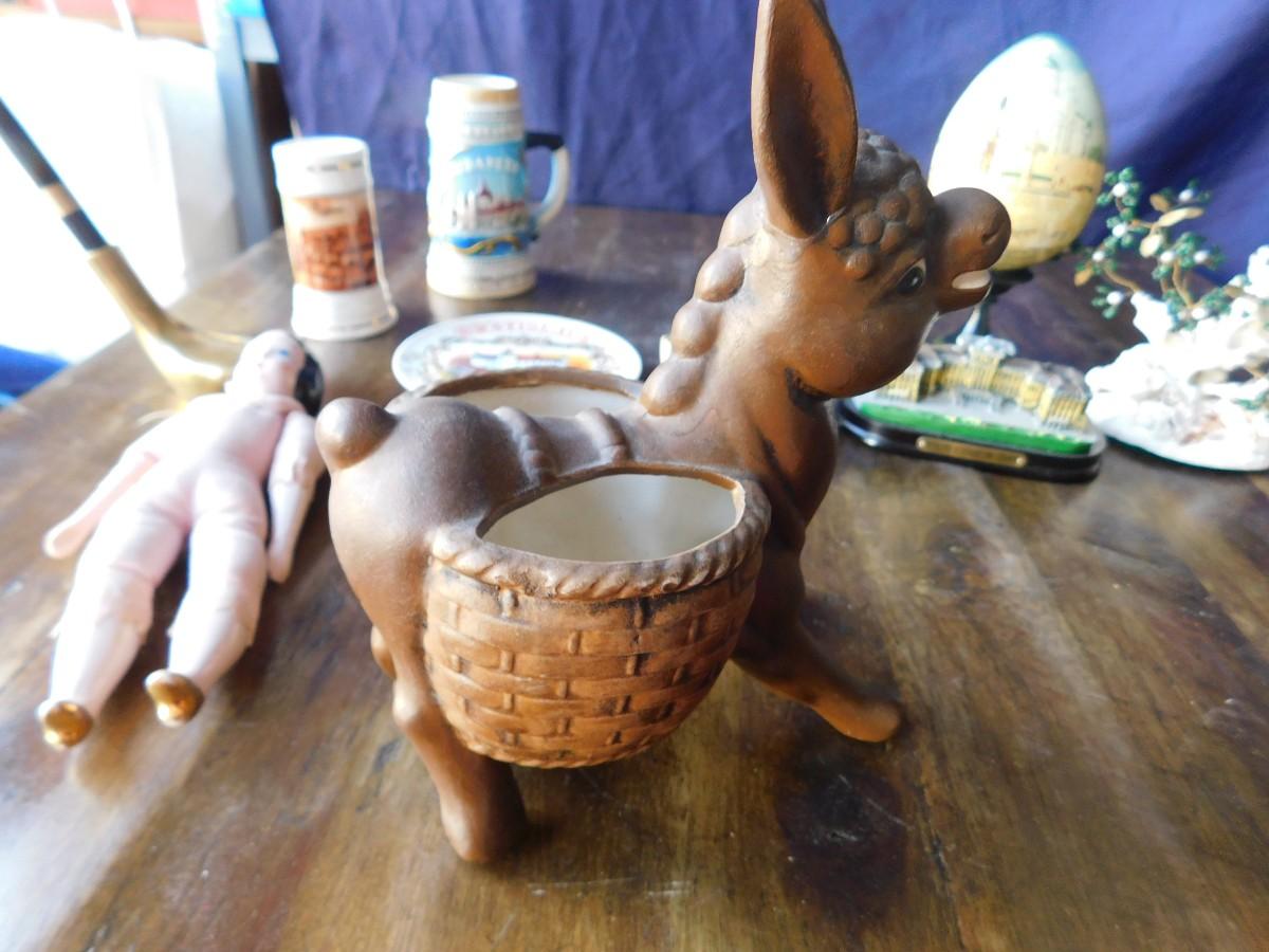 COOL VINTAGE DONKEY PLANTER WITH ITEMS FROM AROUND THE WORLD & MORE