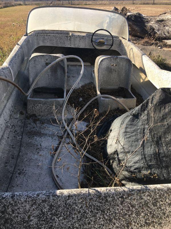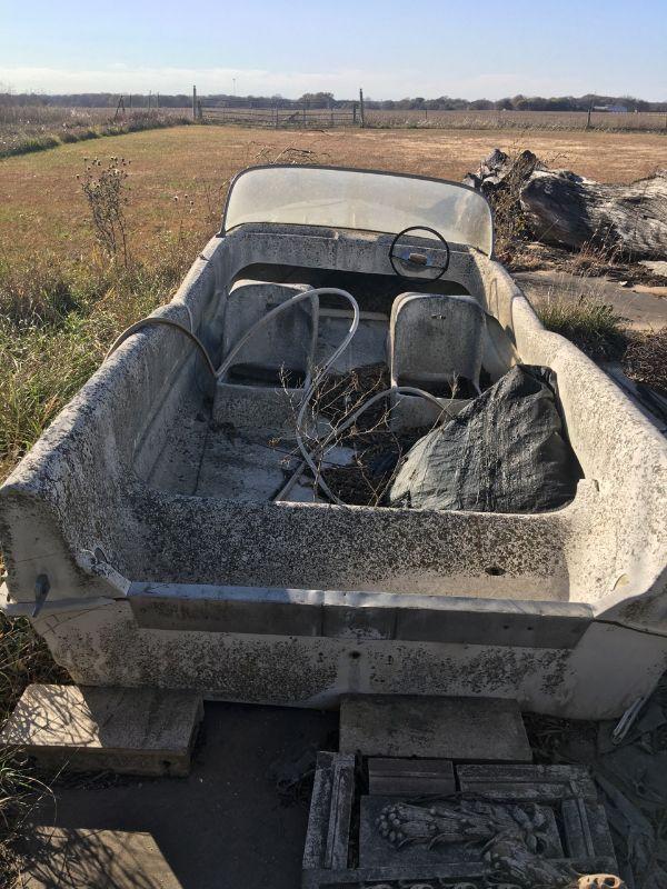 Cool Vintage RedFish 1950s Cadillac style fiberglass boat shell. Field find in relatively good, non-working condition.