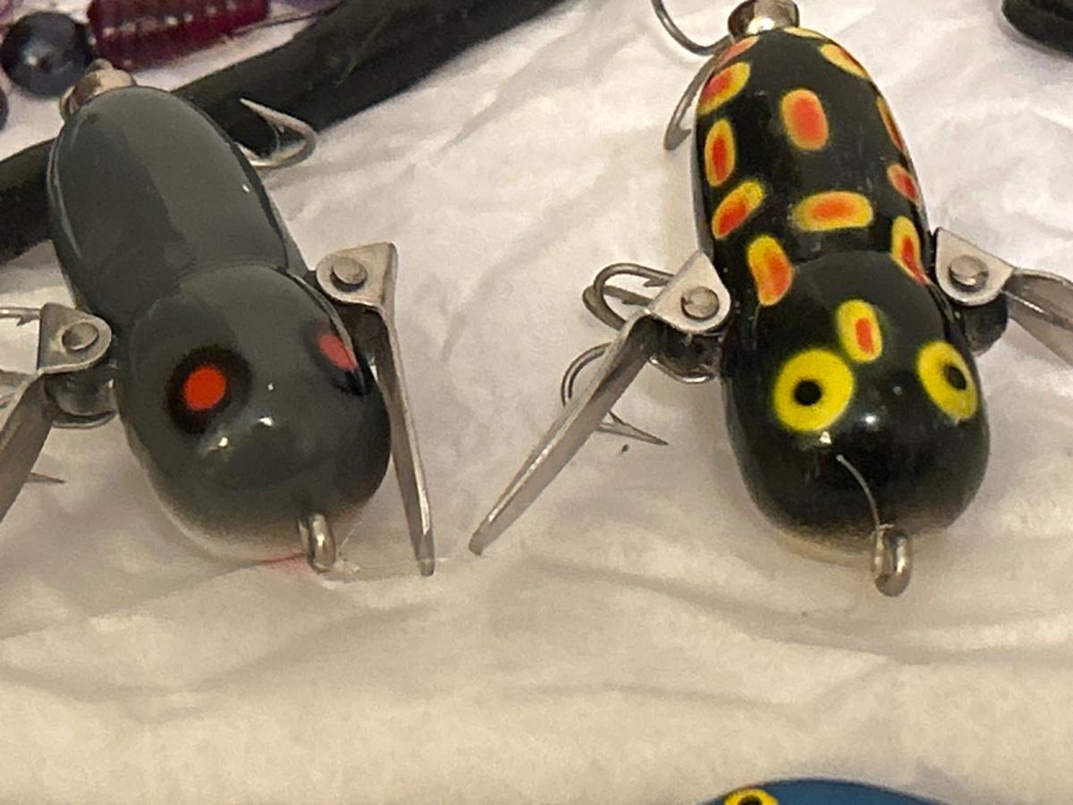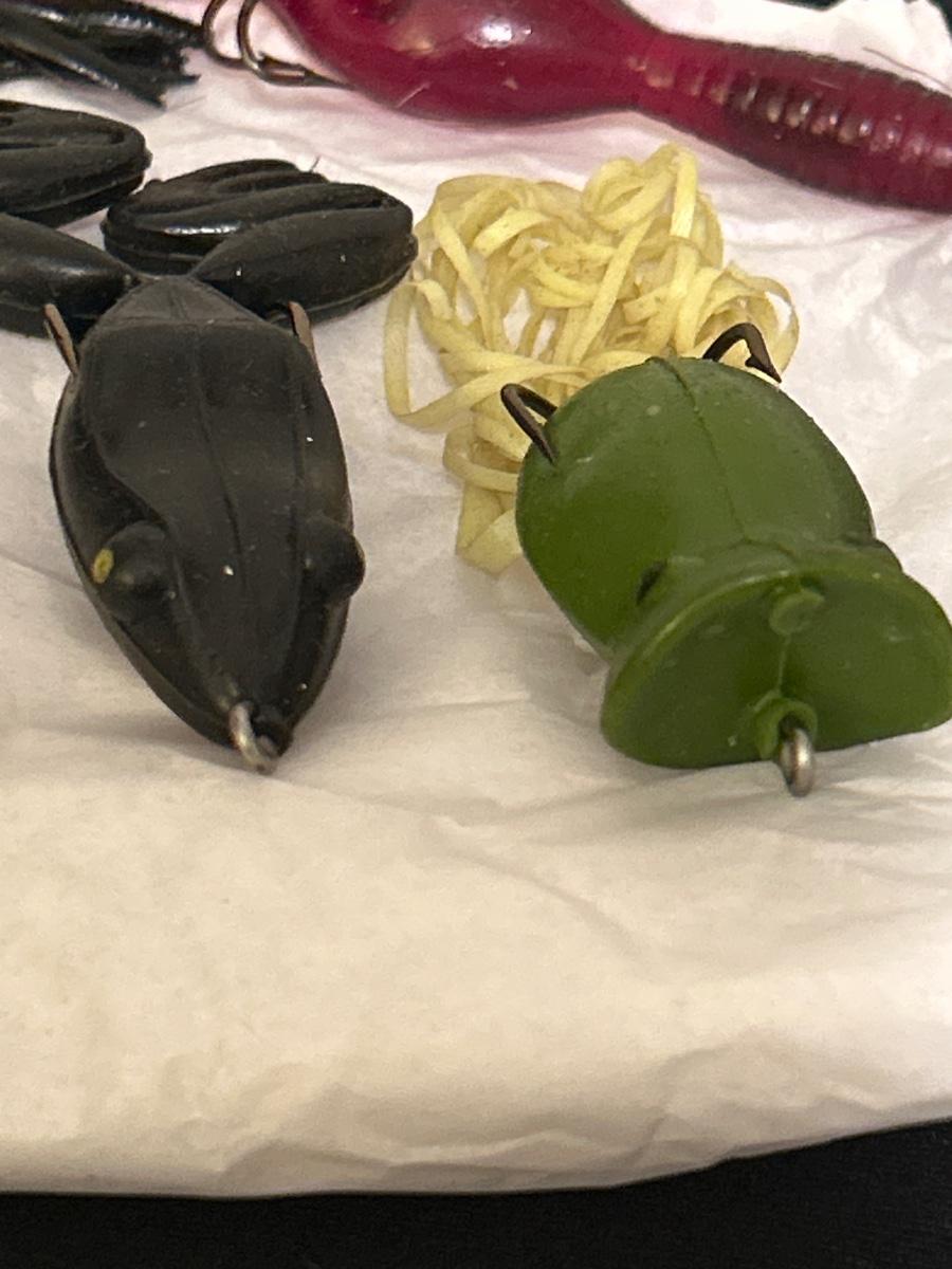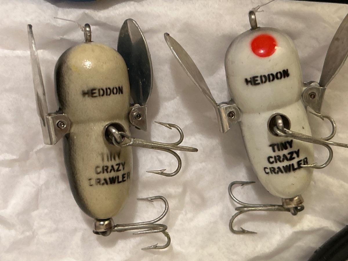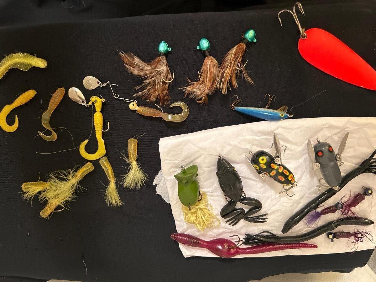 Heddon lazy crawlers, Rapala “Countdown”, Aqua Spoon, Snag proof frogs, Mister Twister & a Road Runner. They were in a messy tackle box so they need some cleaning.