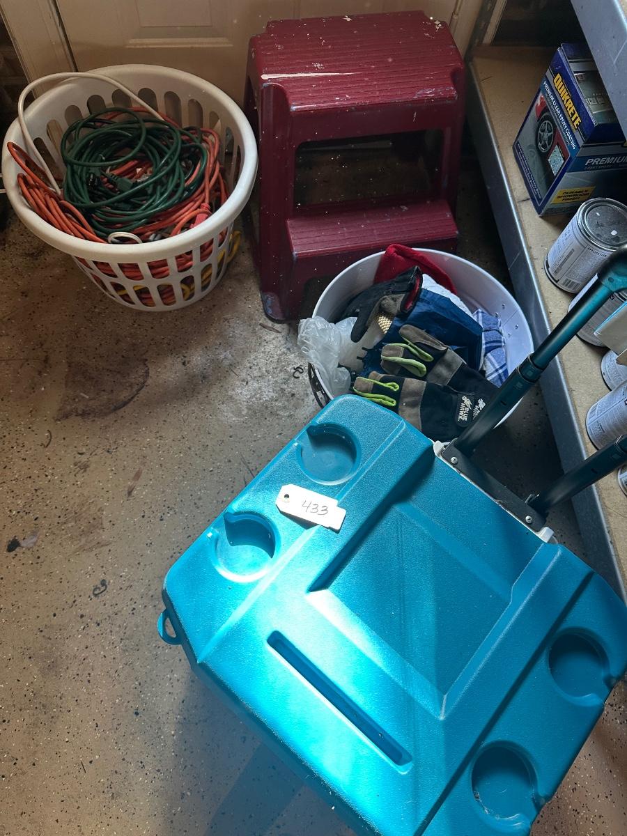 COOLER, EXTENSION CORDS, WORK GLOVES
