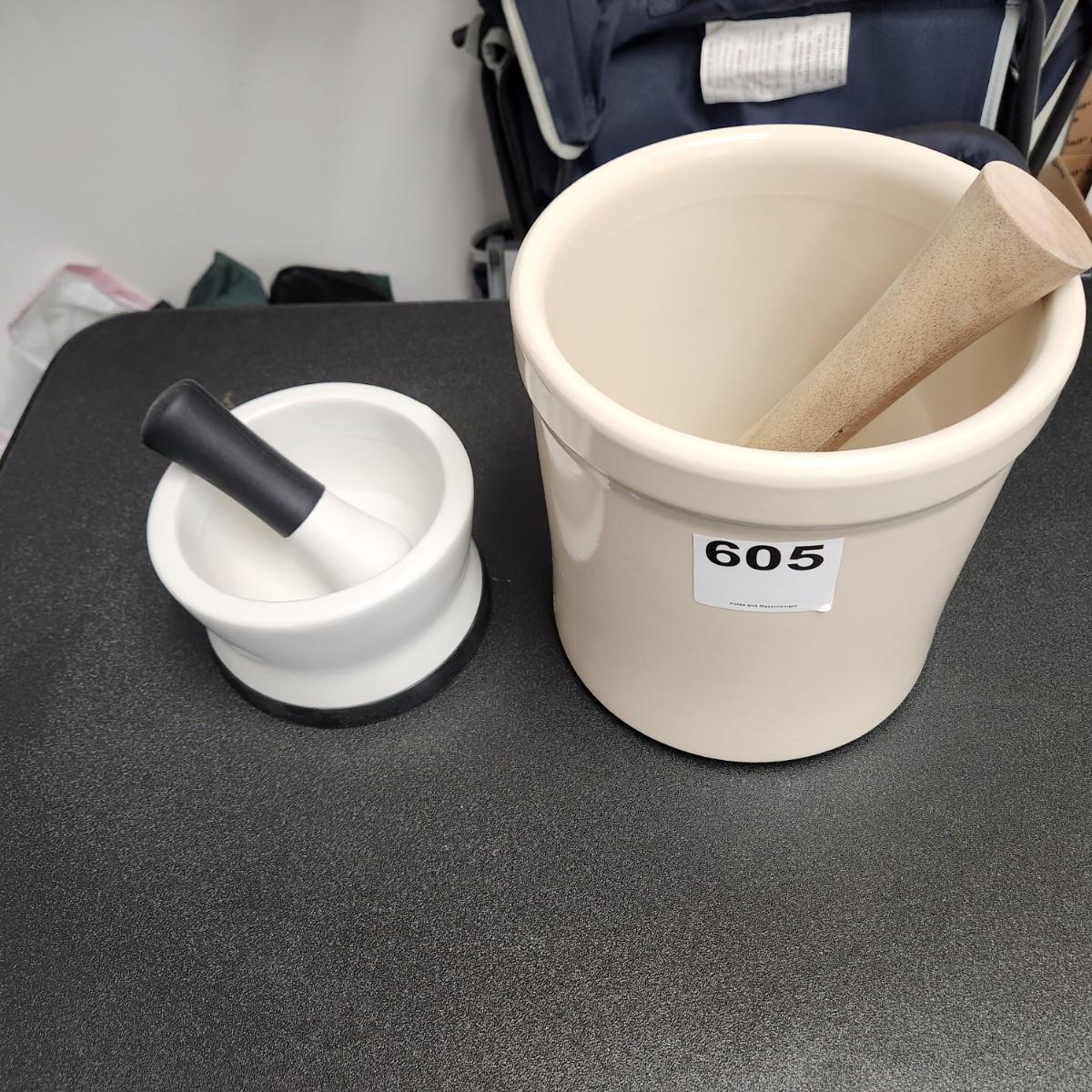 Cooler Kitchen Mortar  & Pestle & Masontops Pickle Tamper with Ohio Stoneware Crock