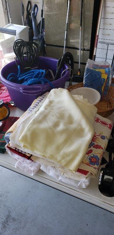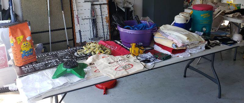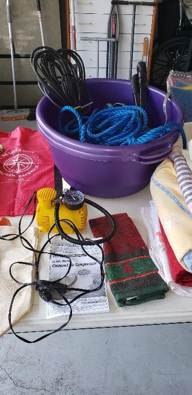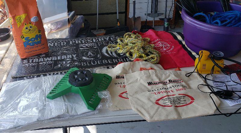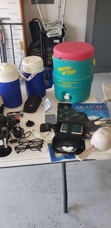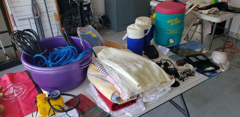 3 Coolers, Sprinkler, Rope's, Cat Liter, Air Pump, Placemats, Tablecloths, Garmin