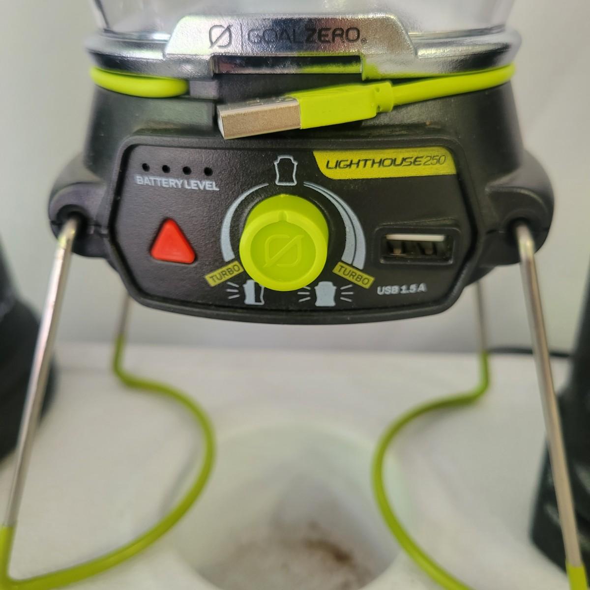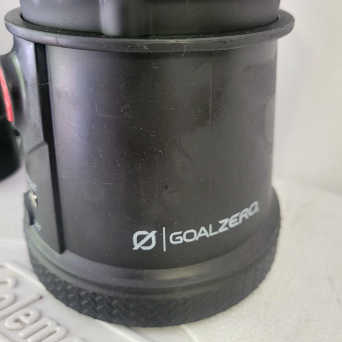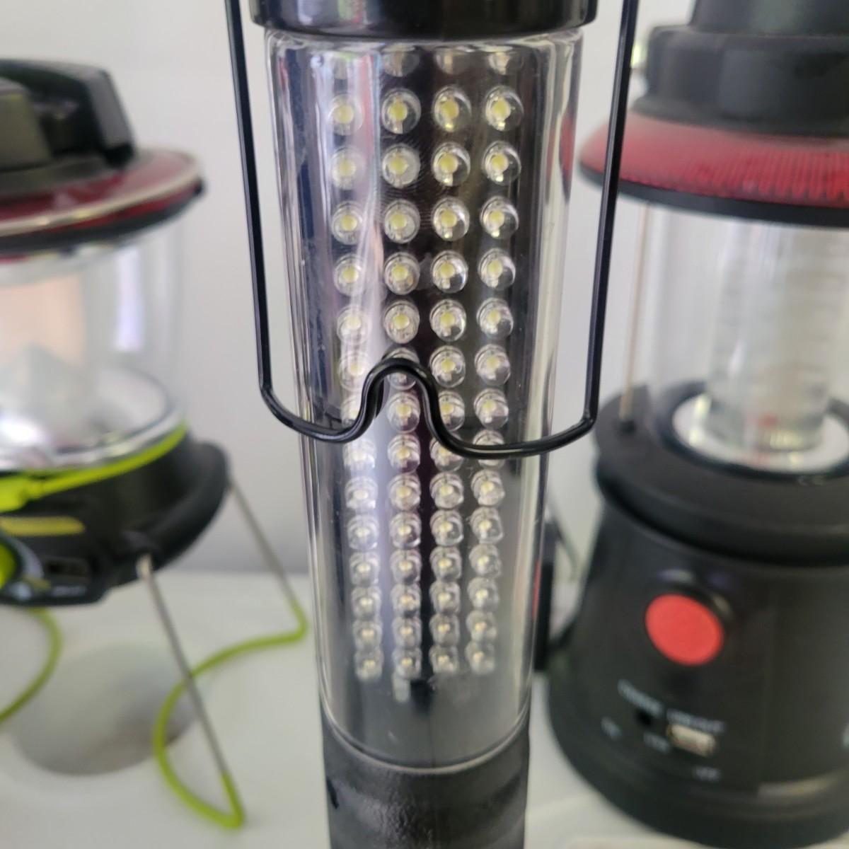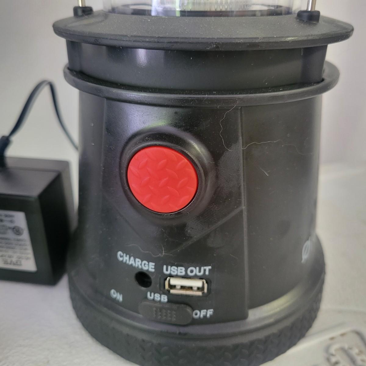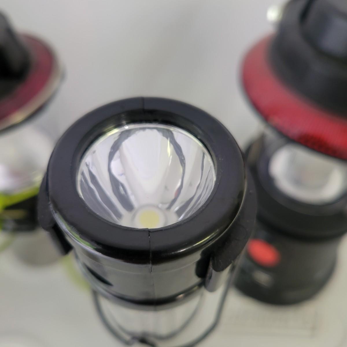 An assortment of four emergency lights, a Coleman cooler, a soft sided cooler and a folding chair. The emergency lights feature rechargeable batteries and three if then have hand cranks and USB power discharges with multiple light settings. The Coleman cooler measures approximately 32" x 16" x 18". It also includes a fabric folding chair and a Whole Foods soft sided cooler. Local pickup only