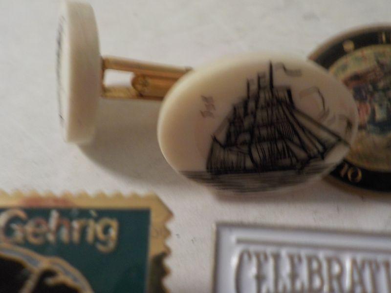 Great pins here.....even a blimp and cuff links of scrimshaw ship.