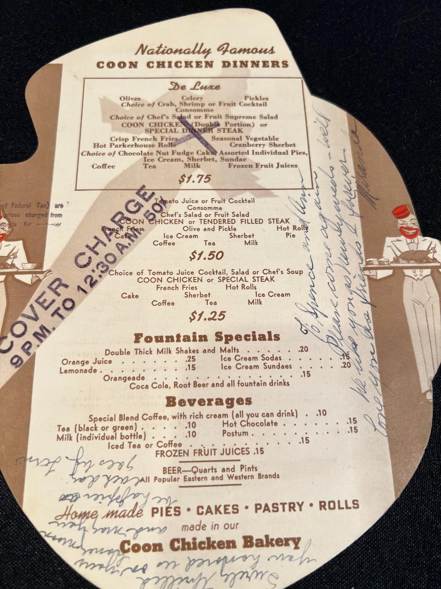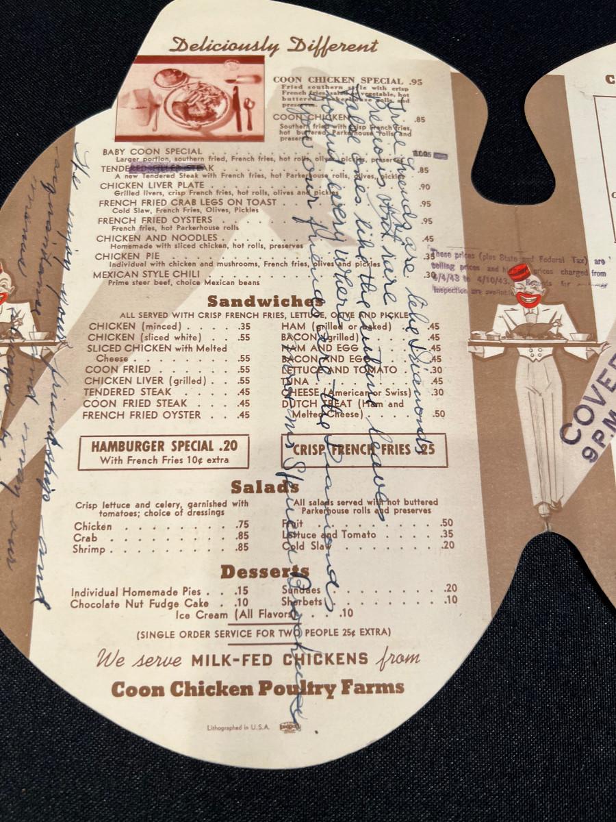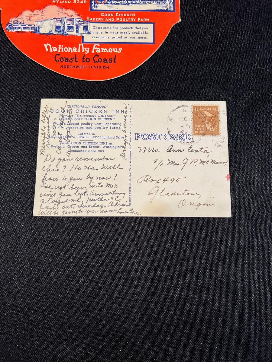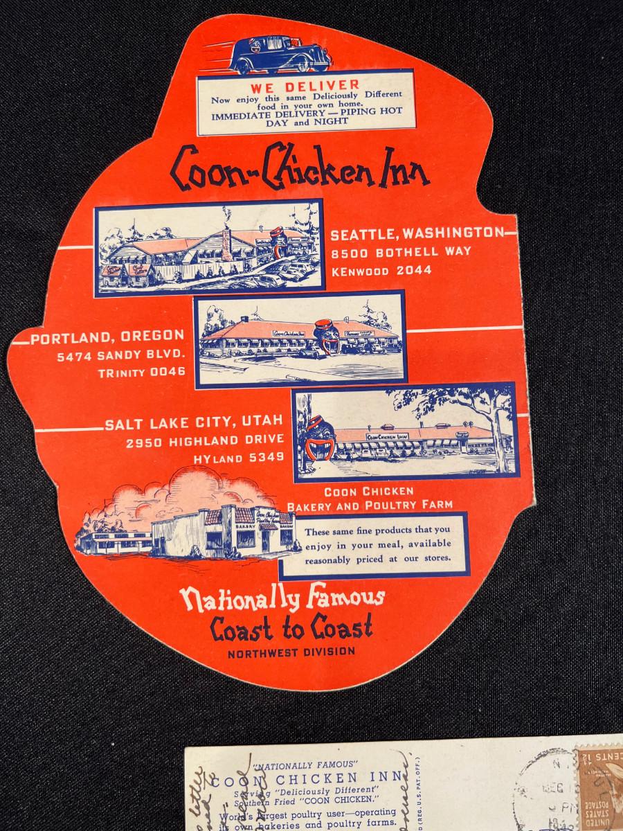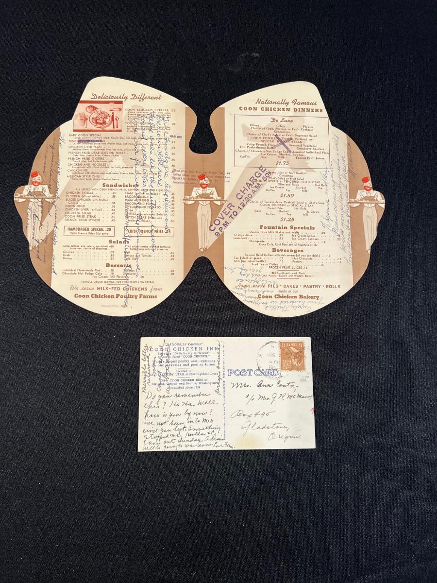 Coon Chicken Inn Menu and Postcard,