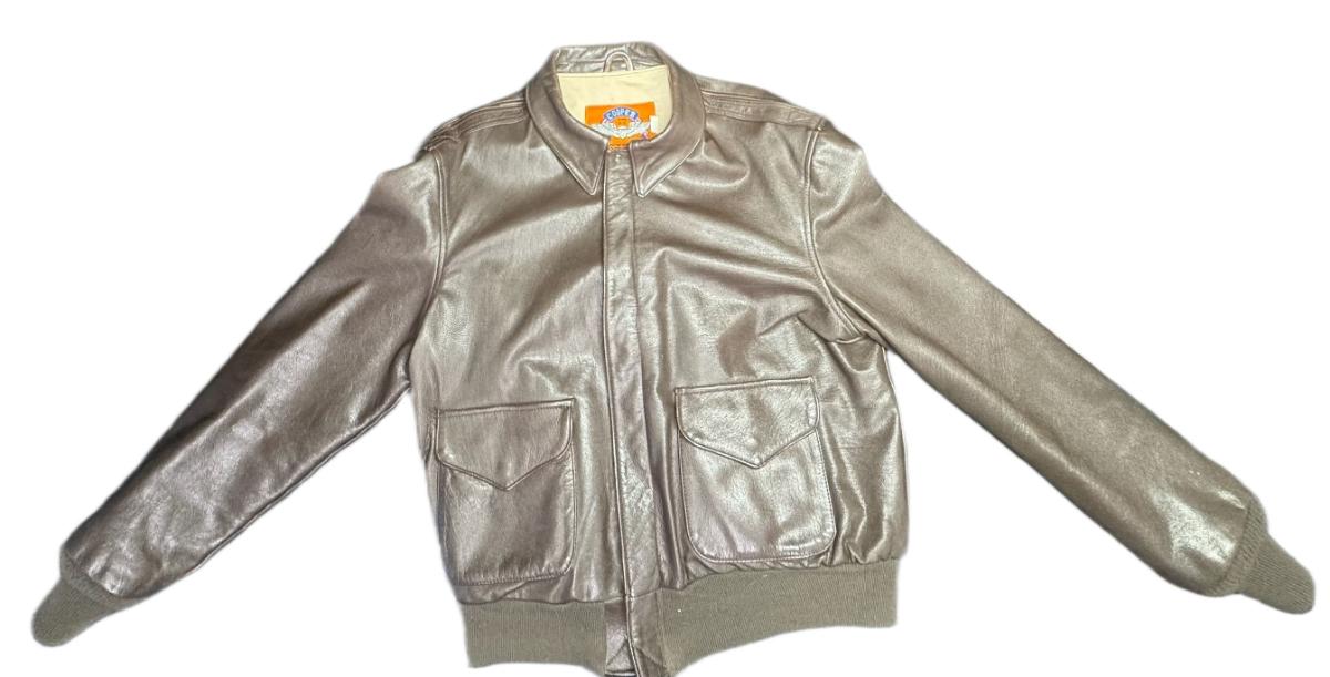 A depiction of the 50th Anniversary of the close of WW2 is on the inside. The jacket was made in USA, in 1995. Size is 44R. [CS]