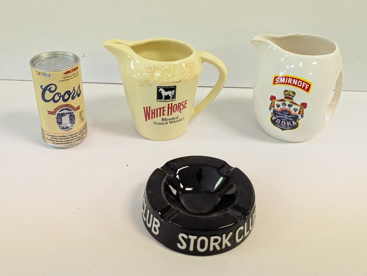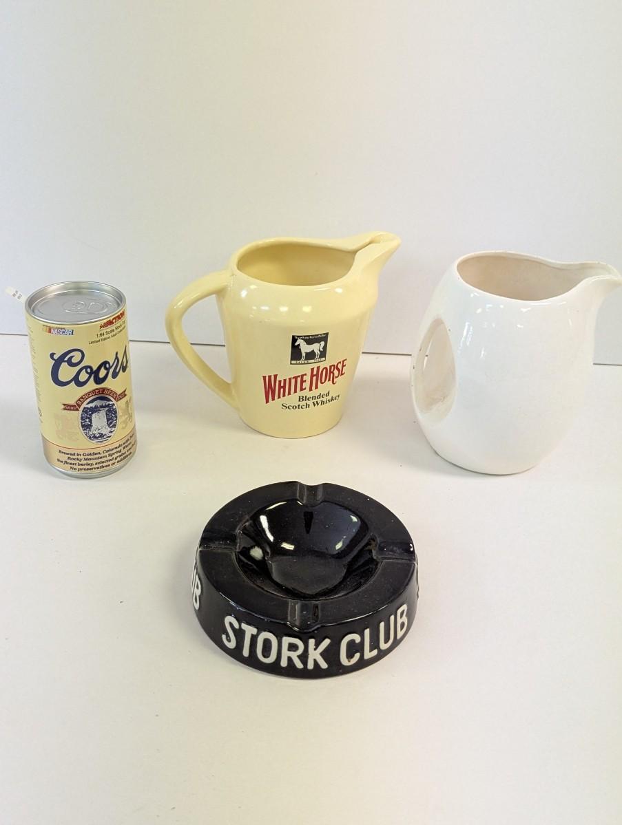 Coors Can White Horse & Smirnoff Pitcher & Stork Club Ashtray