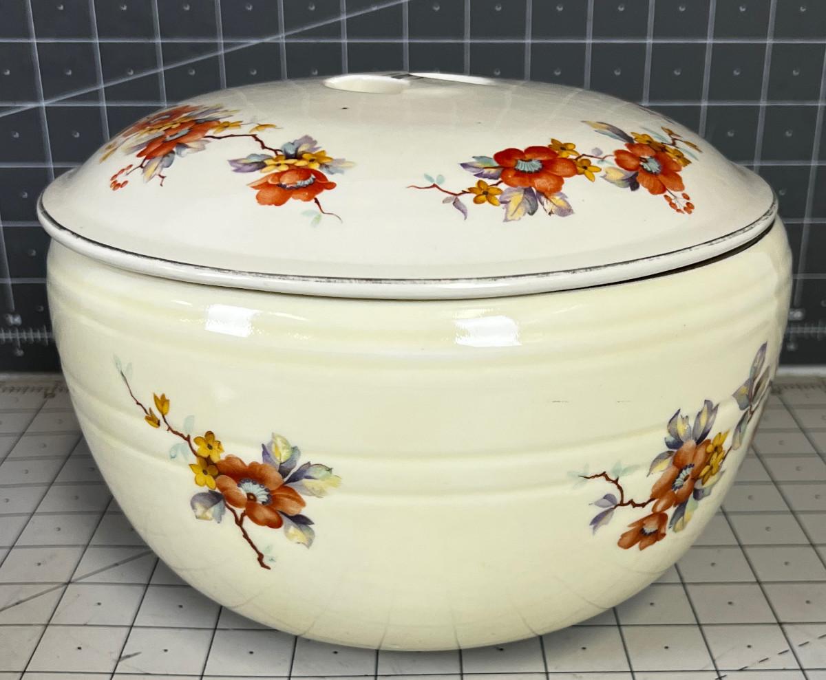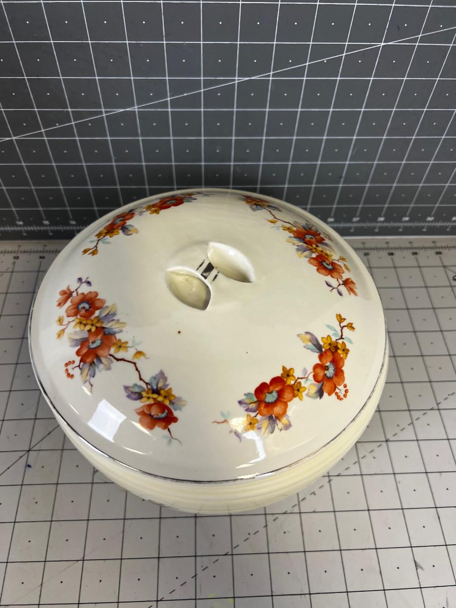 Coors Thermo Porcelain Covered Dish with Rusty Orange Flowers